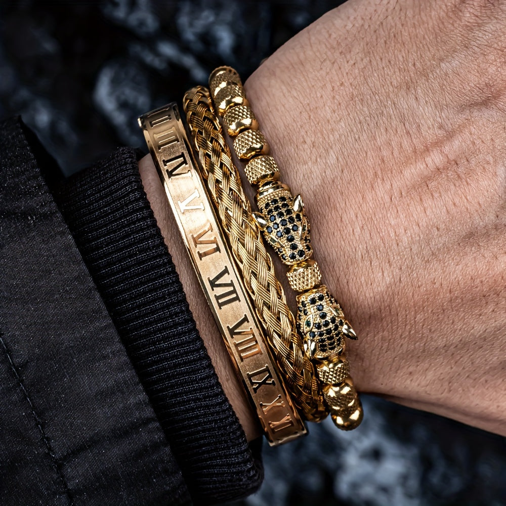 Leopard Head Men's Bracelet Stainless Steel Bead Bracelet