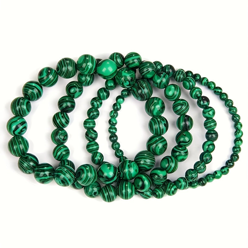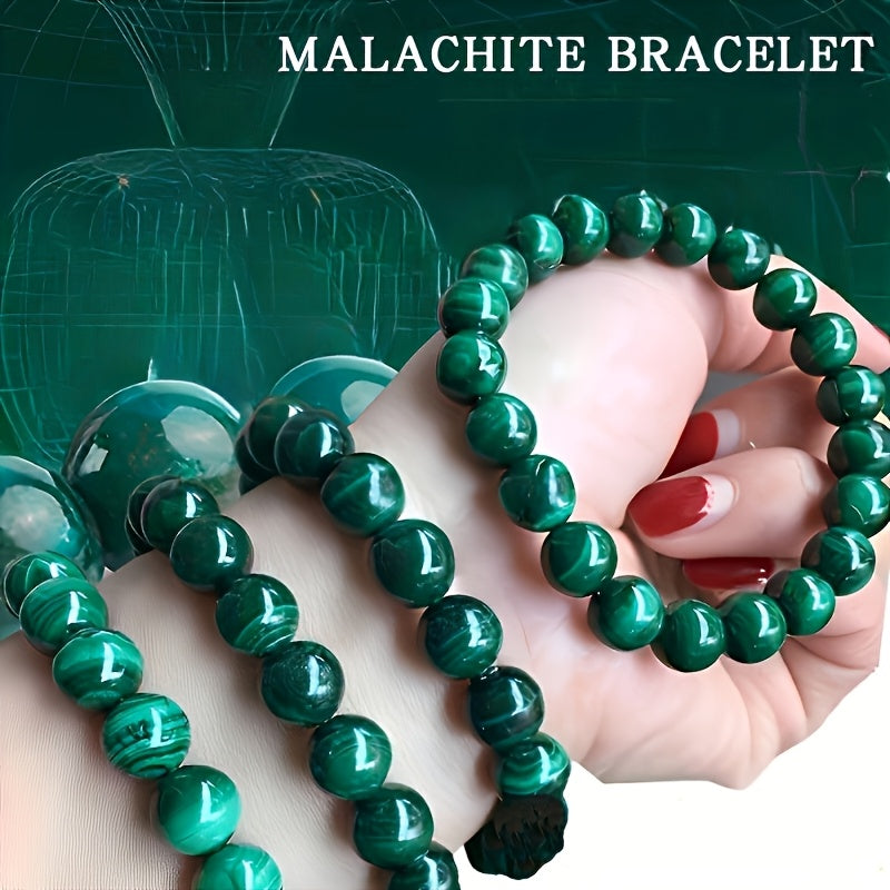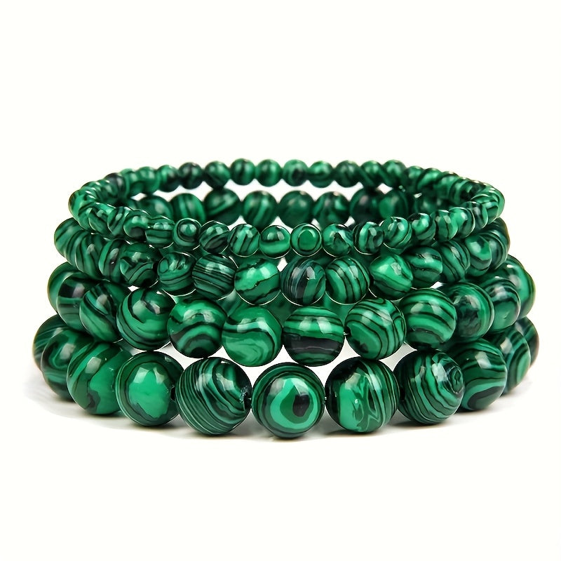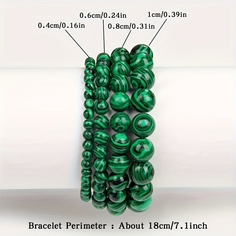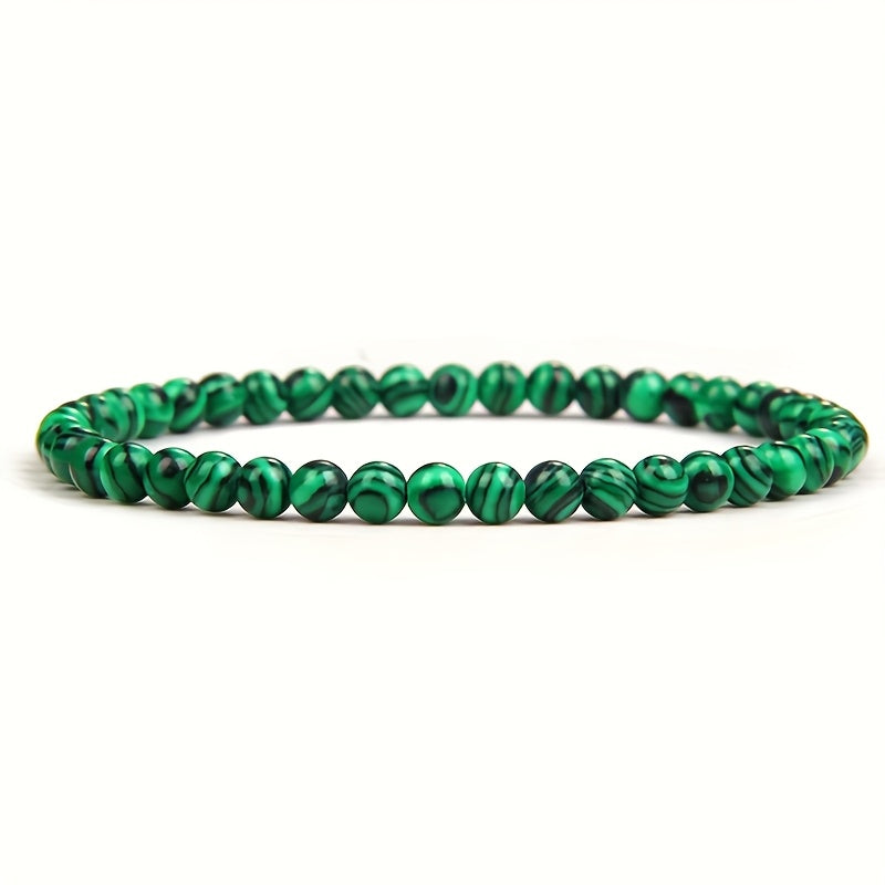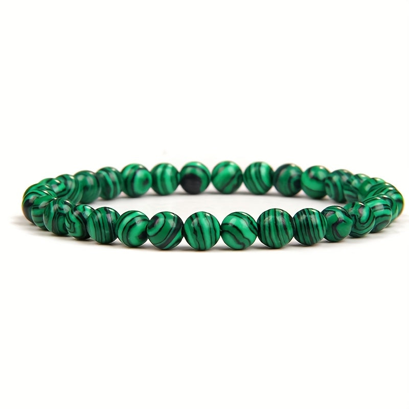This natural malachite bracelet features green gemstone beads in a swirling pattern, making it a perfect gift for men.