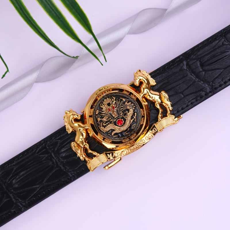 This stylish men's belt features automatic buckle and high-quality PU leather material for a sleek and modern look.