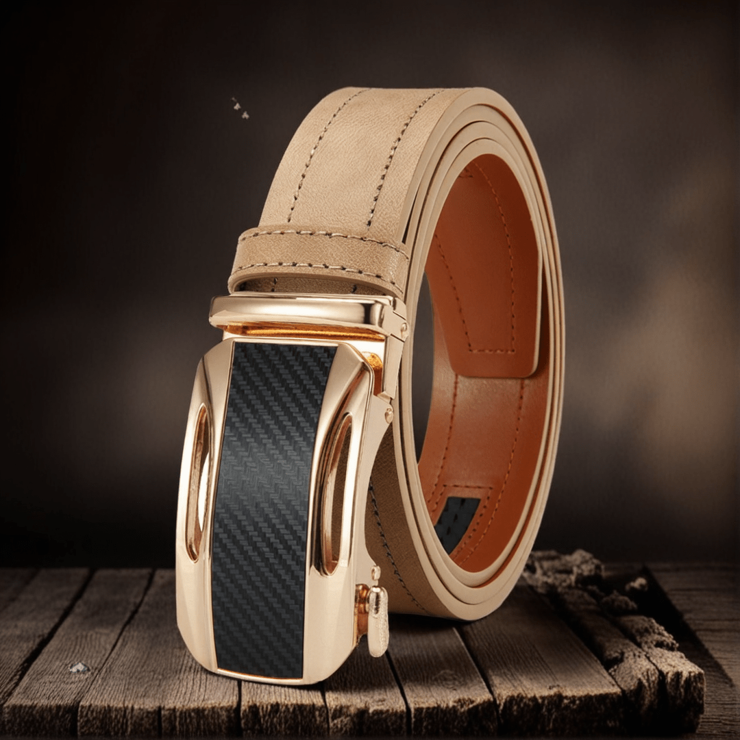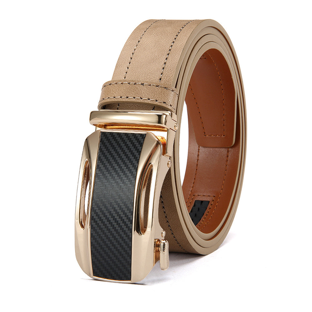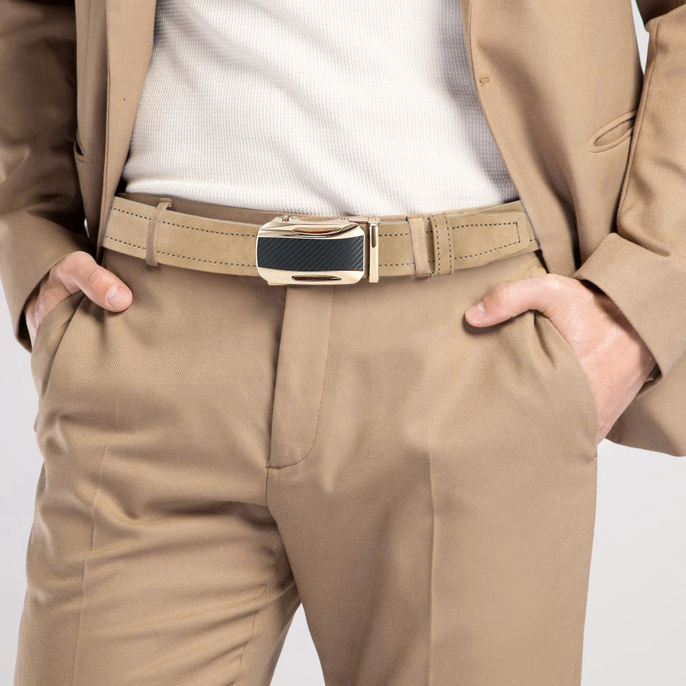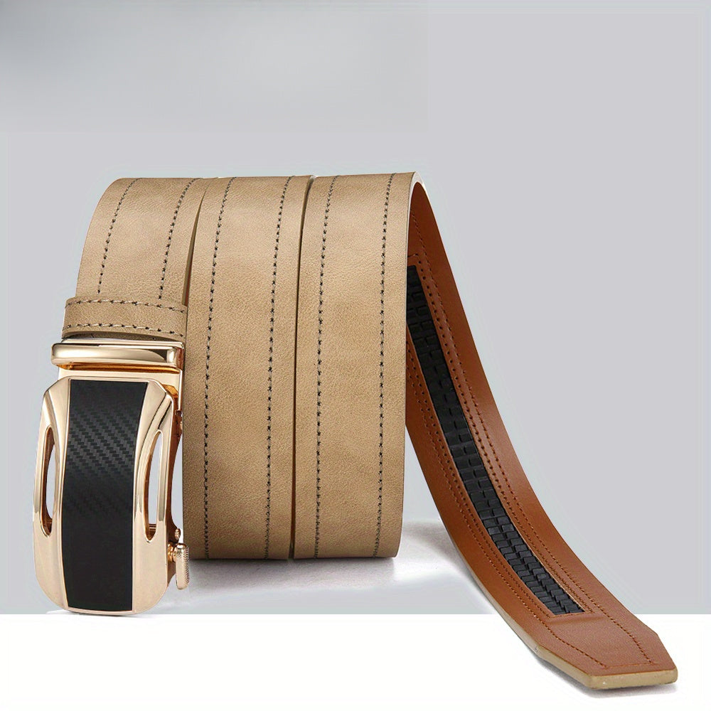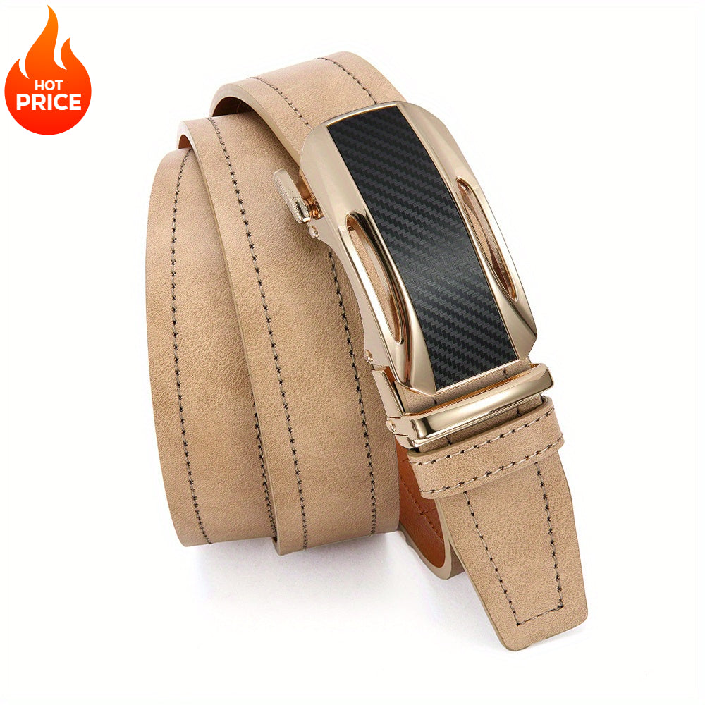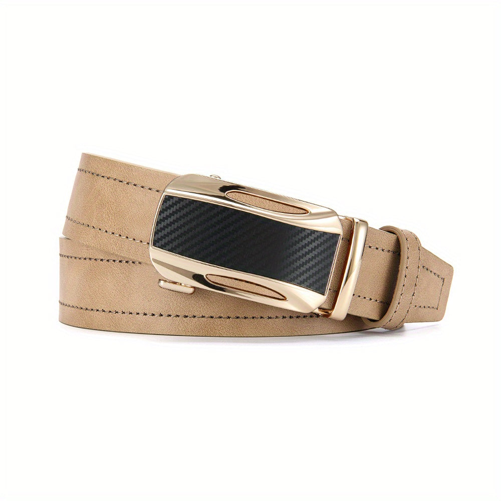 Stay stylish with this beige faux leather ratchet belt, suitable for sports, casual, and formal wear. The golden tone alloy buckle adds a touch of luxury to your outfit.