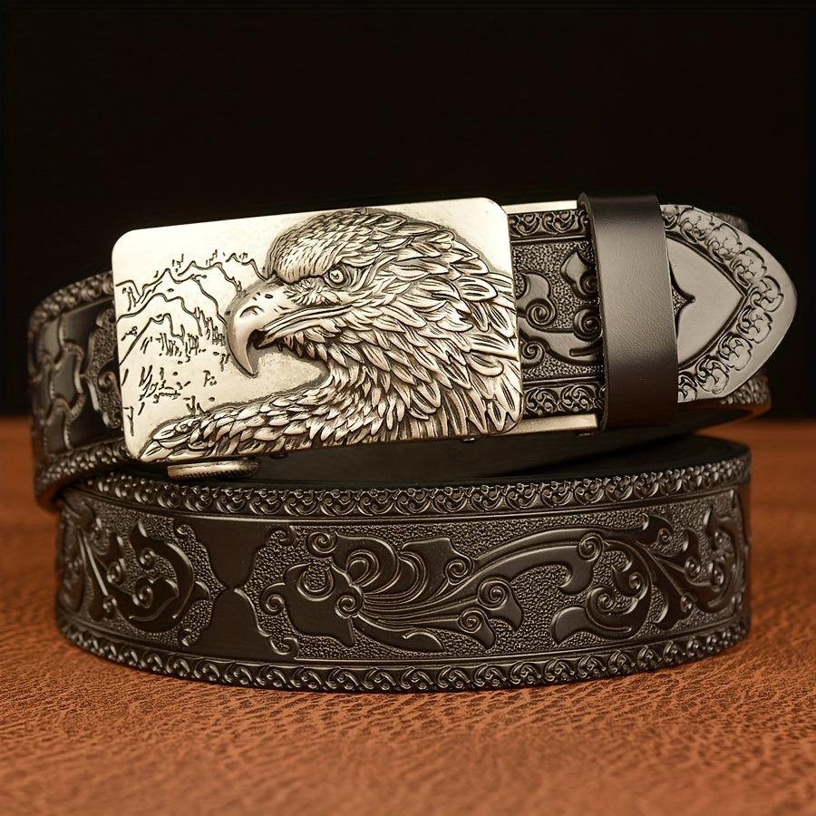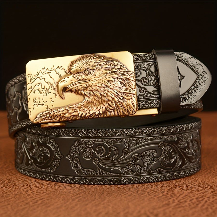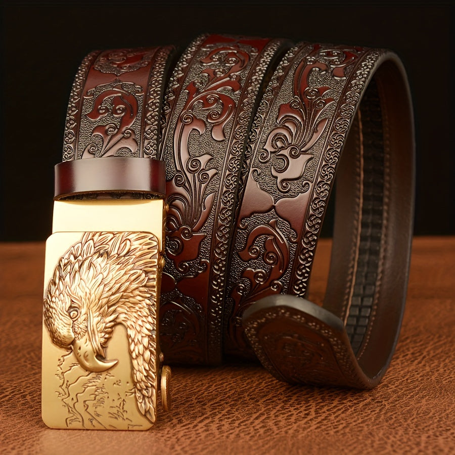 This men's belt is made of high-quality faux leather and features an automatic buckle. It is a perfect gift for your husband or dad.