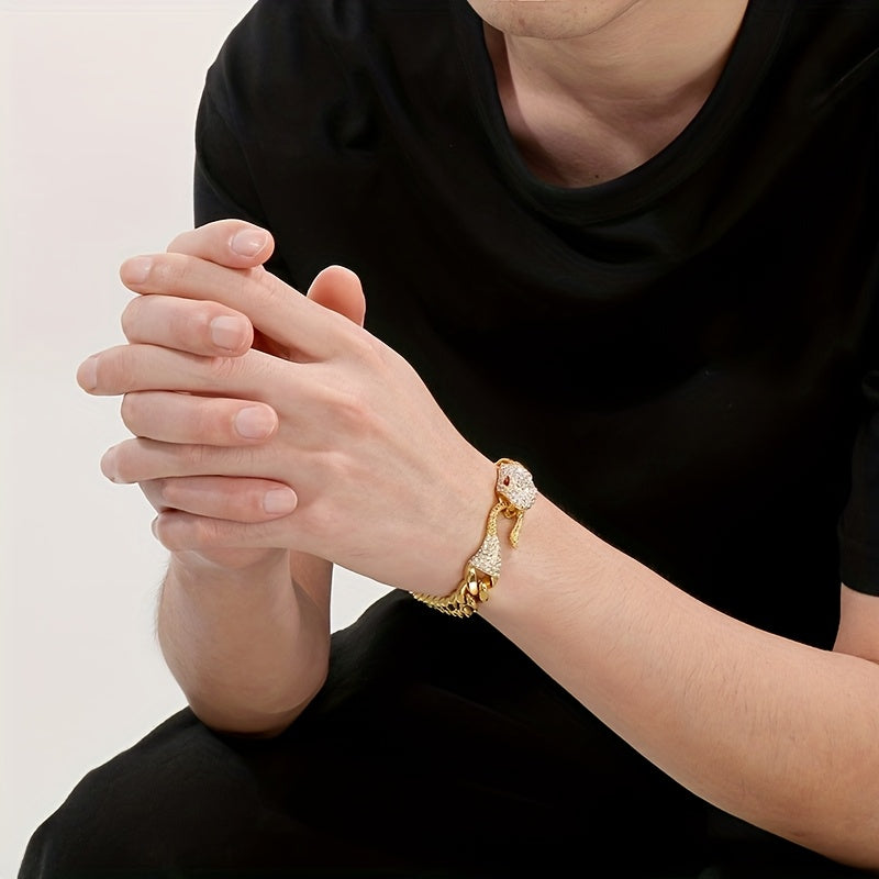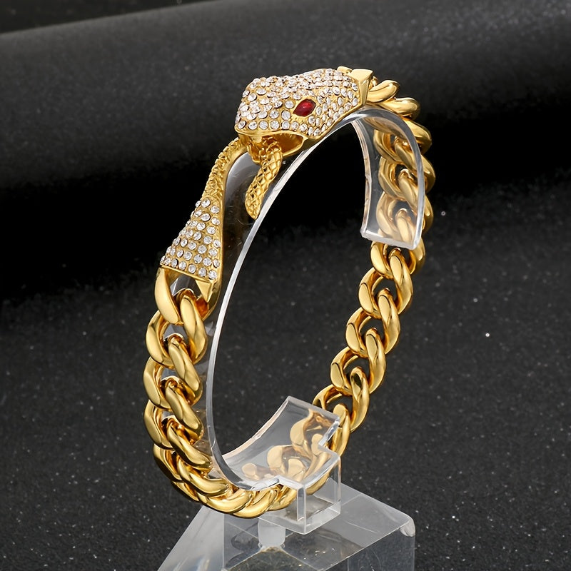 Add a touch of style to your outfit with this men's Cuban link bracelet featuring a snake head charm. Made of high-quality stainless steel with a golden tone finish, this bracelet is both durable and stylish.