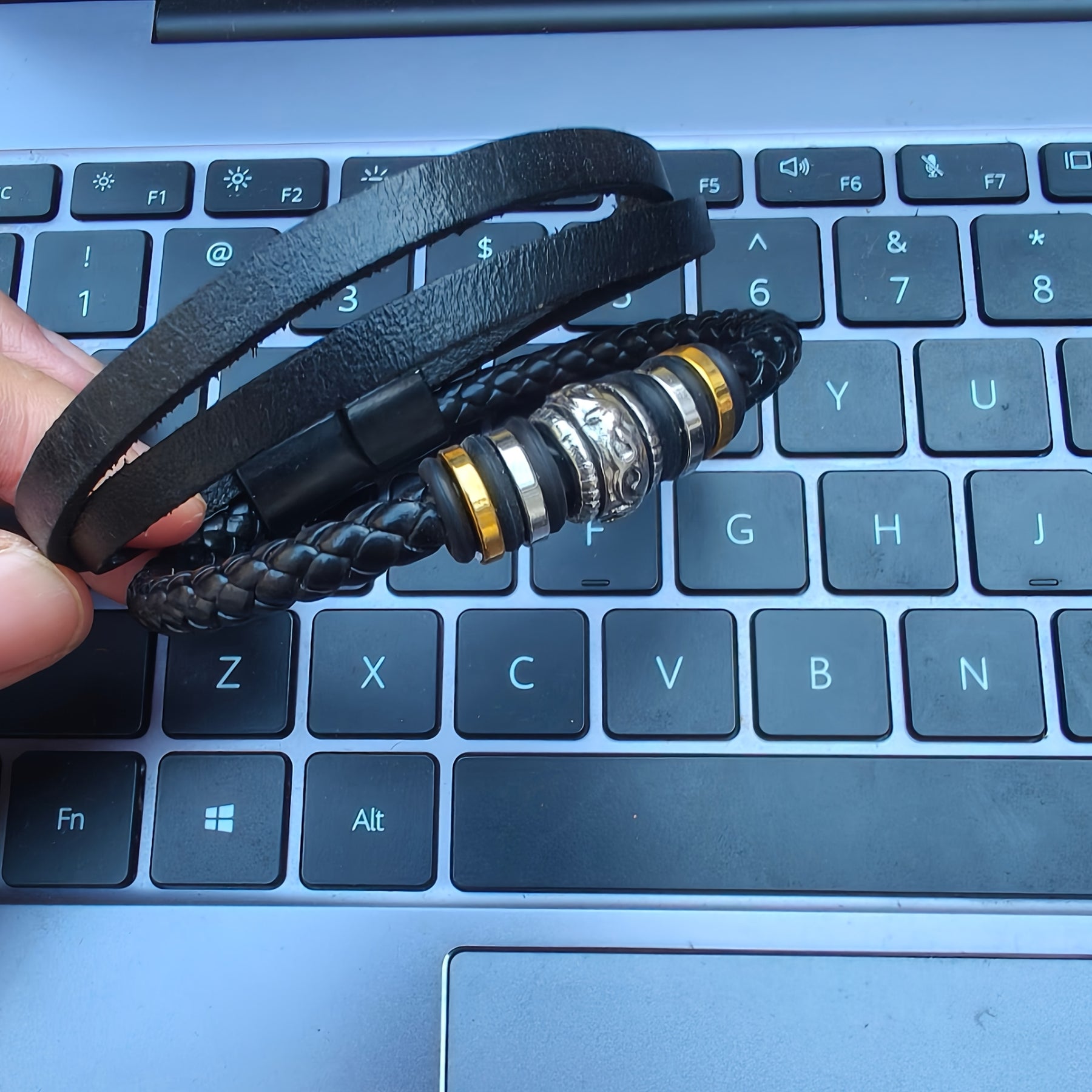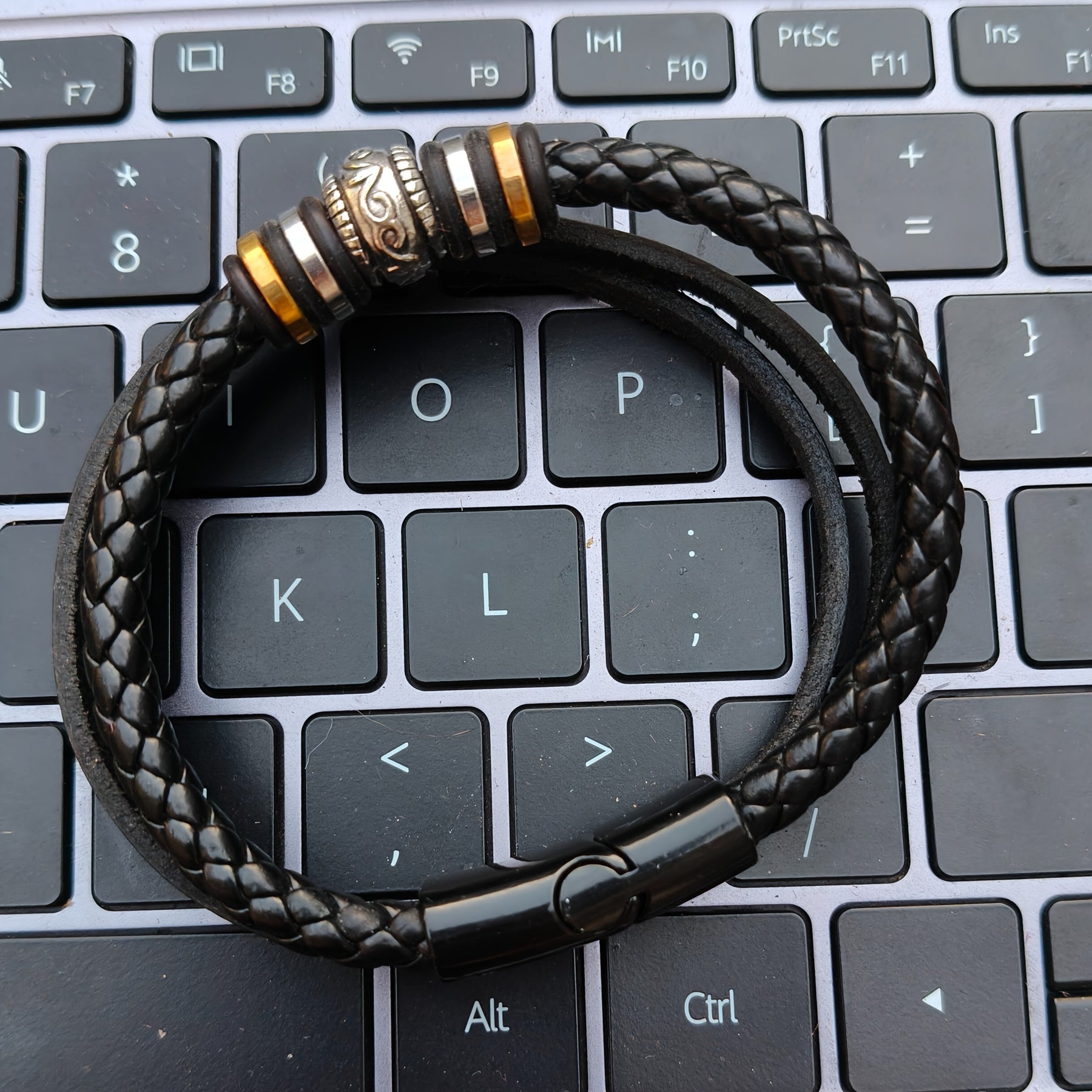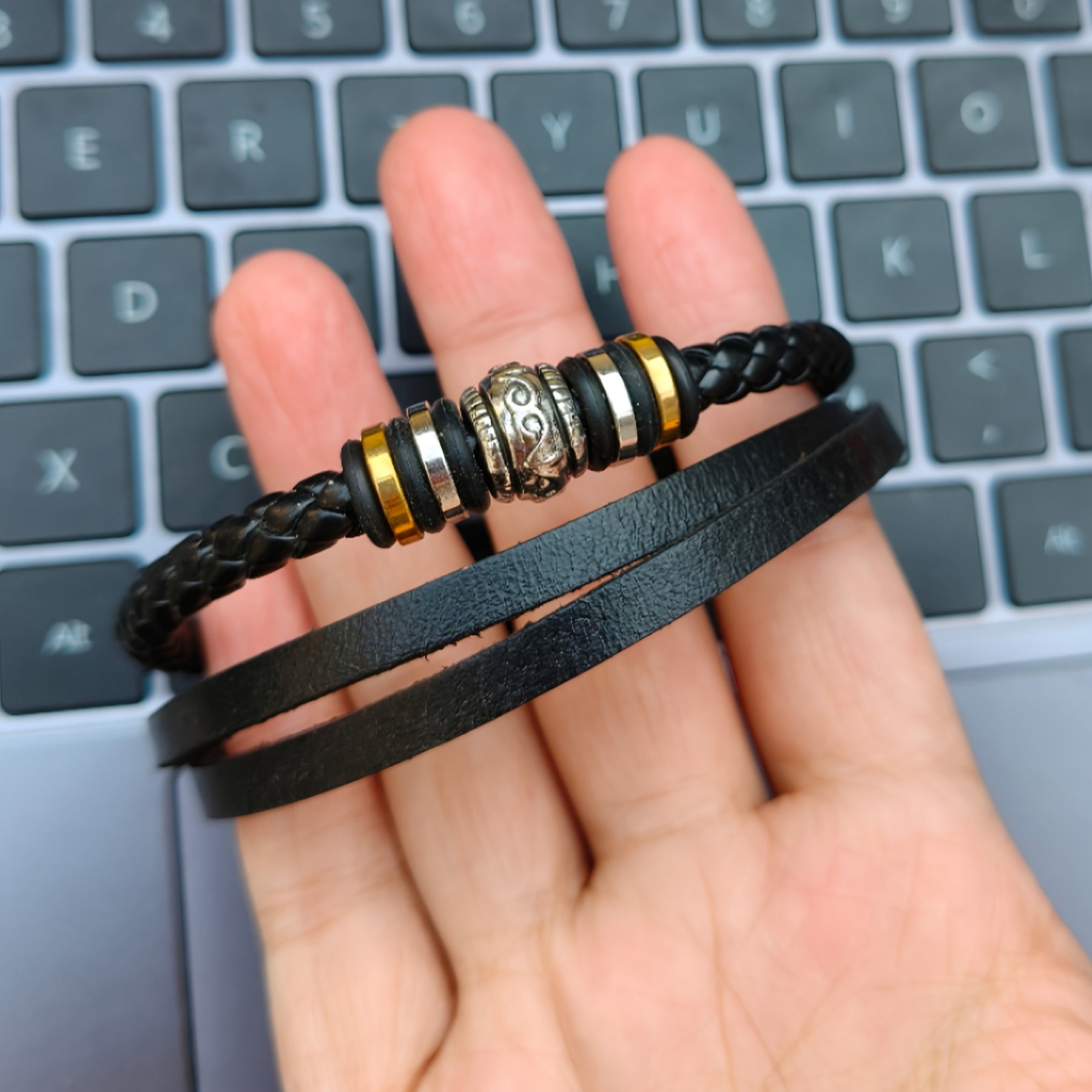 Adjustable braided gemstone details make this faux leather bracelet a stylish choice for daily wear or special occasions. It is the perfect gift for men.