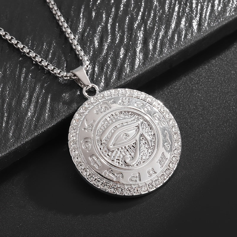 Show off your funky style with this alloy Horus Eye necklace featuring rhinestone embellishments. The pendant is inspired by ancient Egyptian amulets.