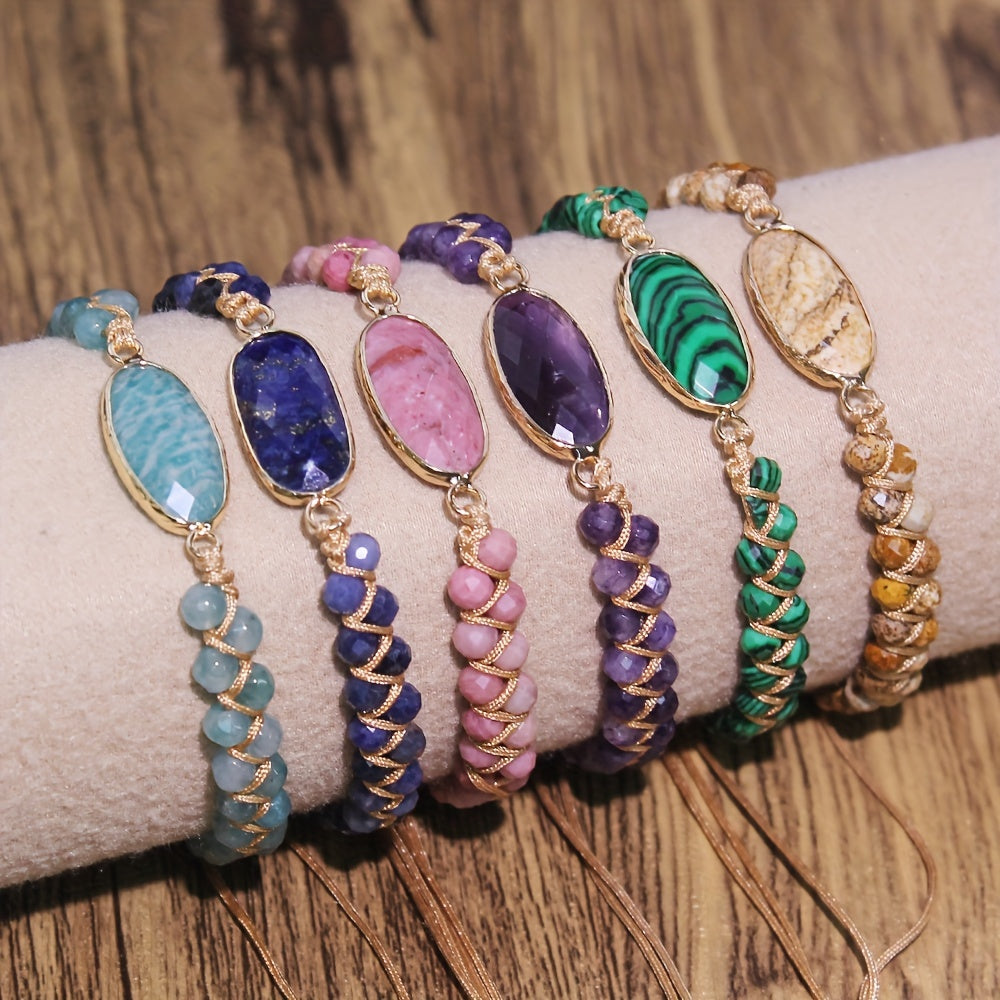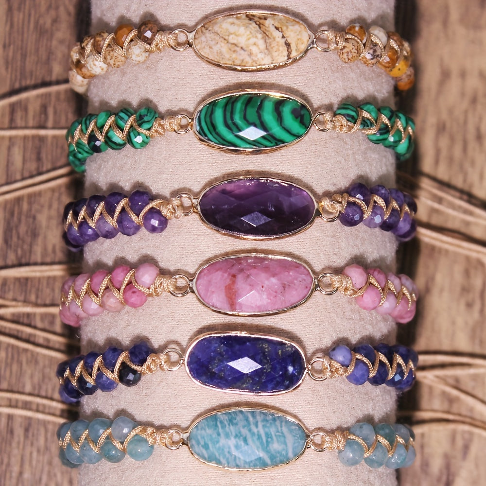 Men's Natural Stone Hand Woven Bracelet Aquamarine Lapis Lazuli