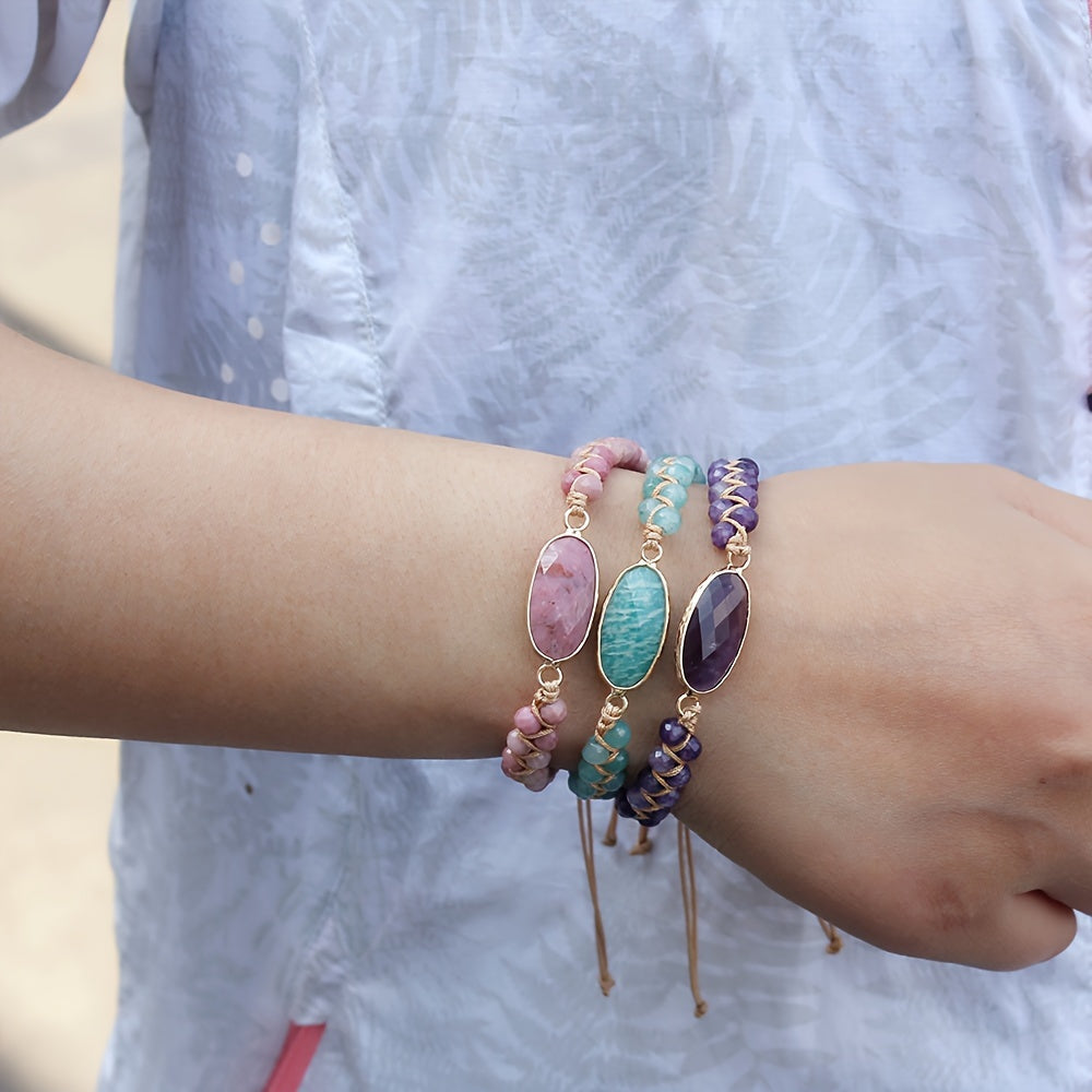 This men's hand woven bracelet features a combination of aquamarine and lapis lazuli natural stones. Suitable for both men and women.