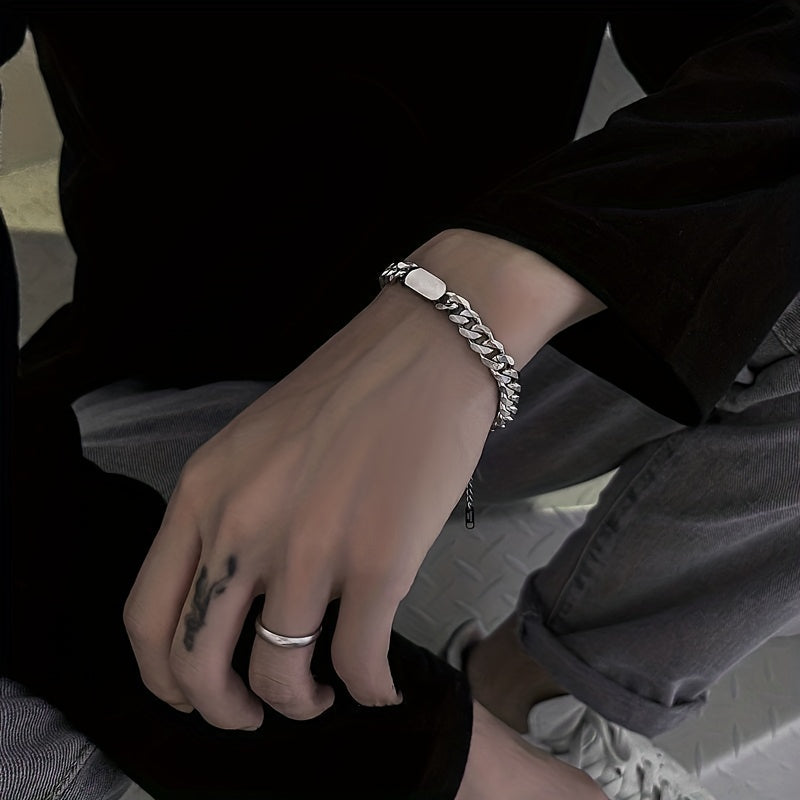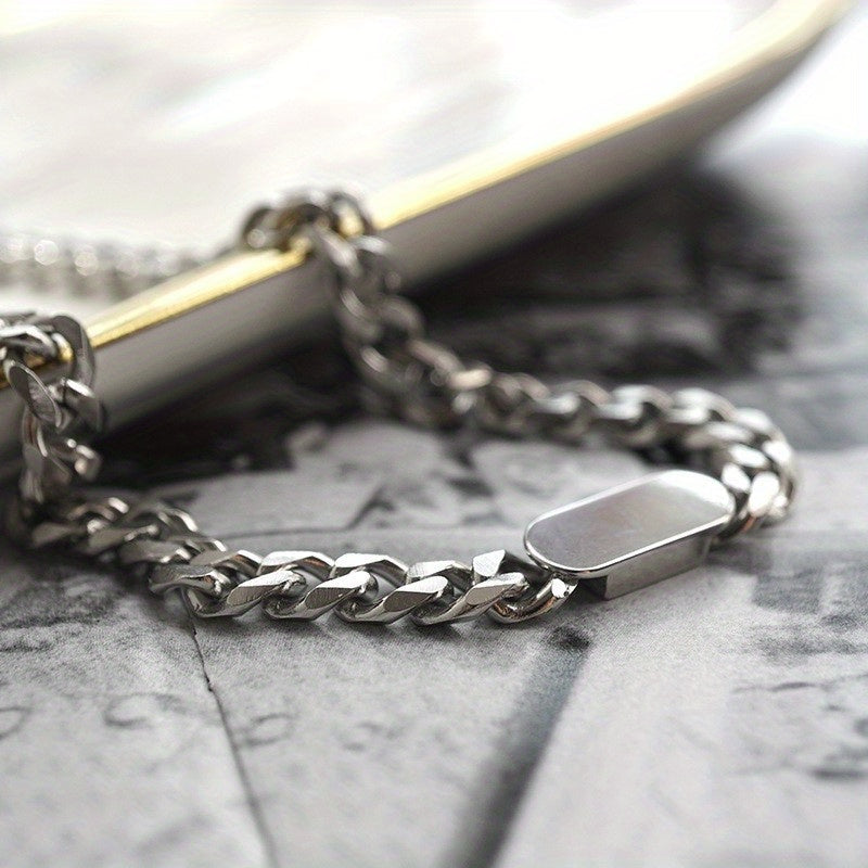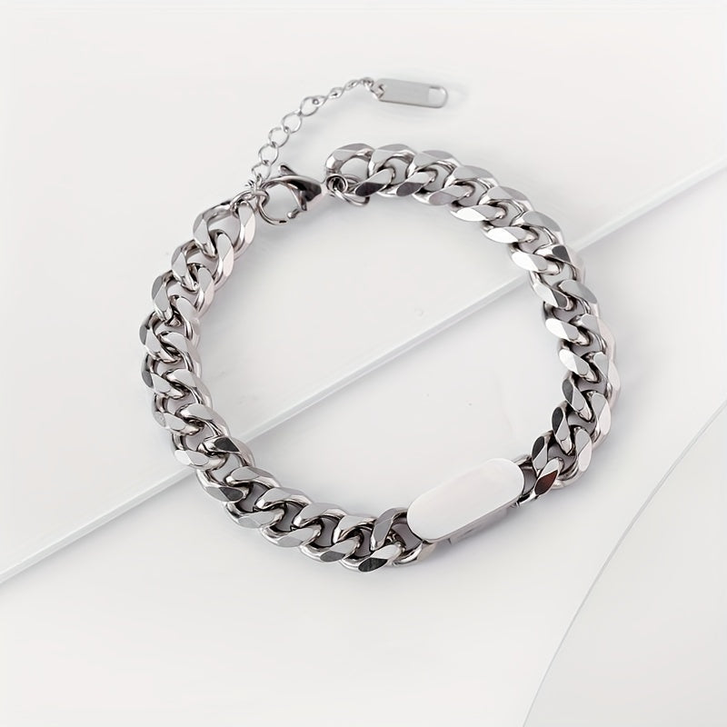 This stylish men's bracelet features a stainless steel Cuban chain design, perfect for adding a hip hop touch to your outfit.