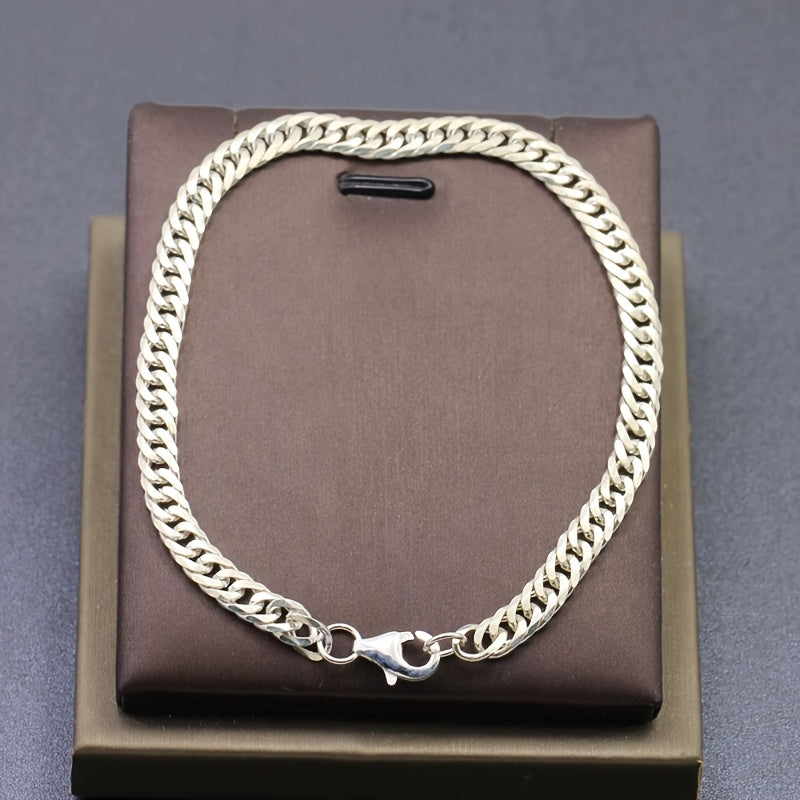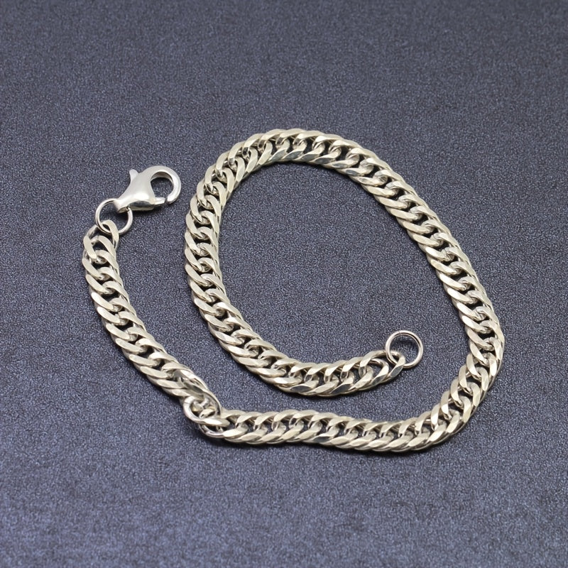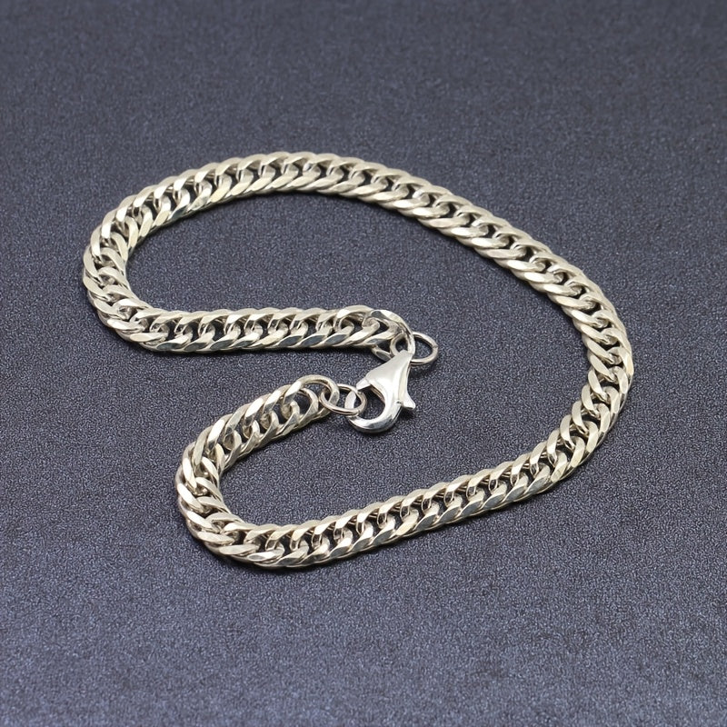 This minimalist dual tone chain bracelet is made of hypoallergenic stainless steel, perfect for casual attire. It features a durable lobster clasp and makes a great gift for any occasion.