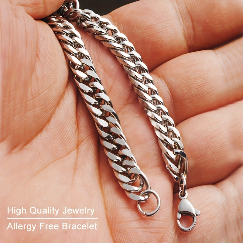 Men's Stainless Steel Dual Tone Chain Bracelet Hypoallergenic Lobster Clasp