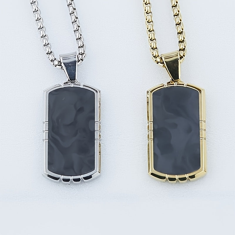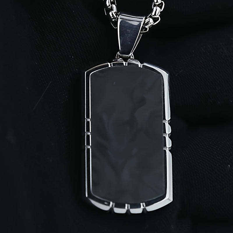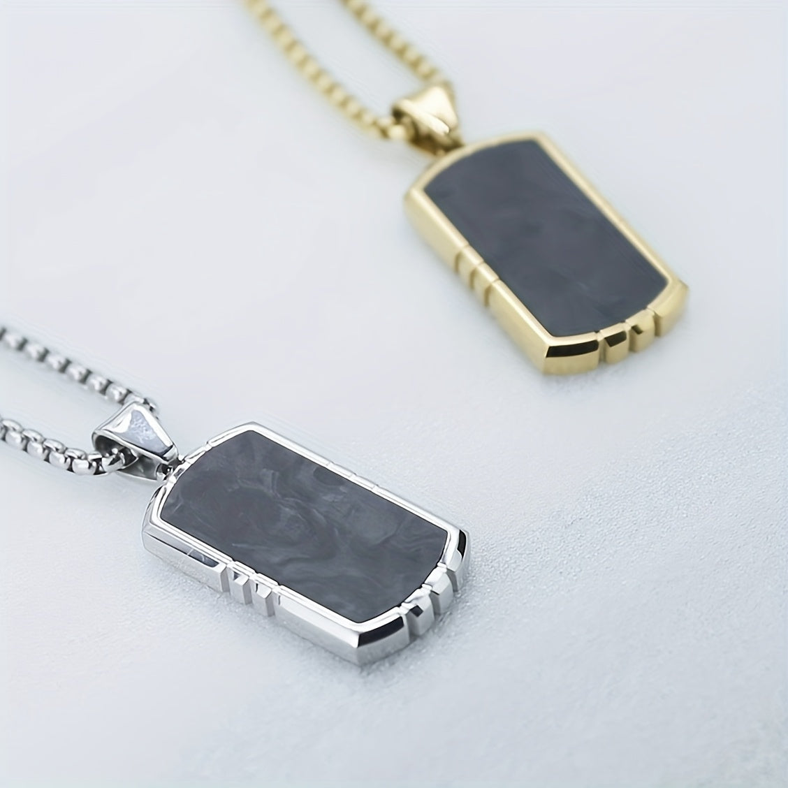 This men's pendant necklace features a funky geometric pattern made of carbon fiber and stainless steel. It's perfect for daily wear, parties, or as a gift.