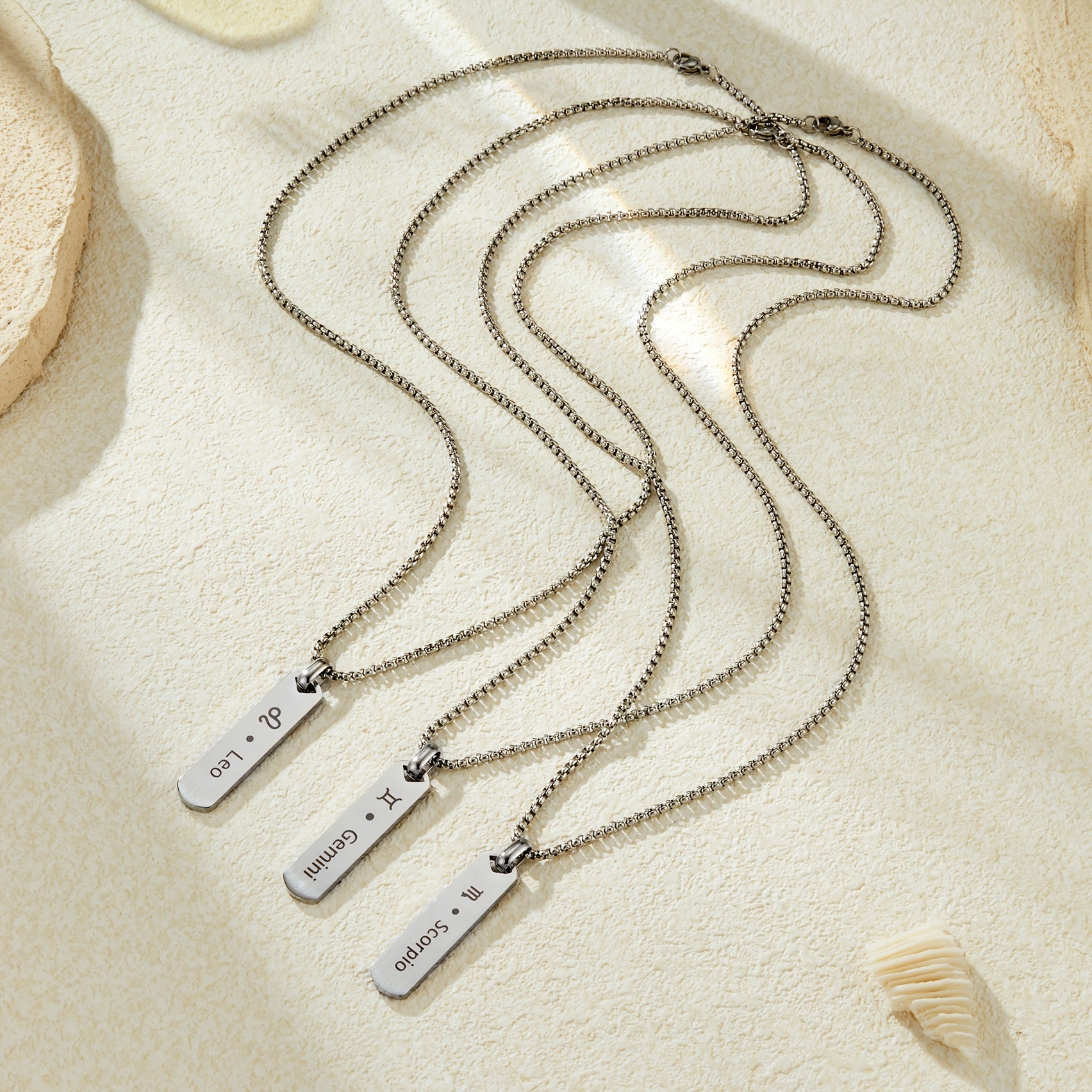 This stylish pendant necklace features a stainless steel zodiac sign design for men.