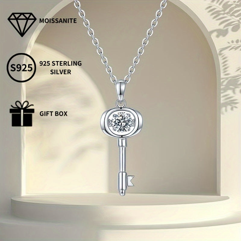 Elegant S925 Sterling Silver keychain necklace set with 0.5ct Moissanite. Perfect for daily wear, parties, banquets, and music events.