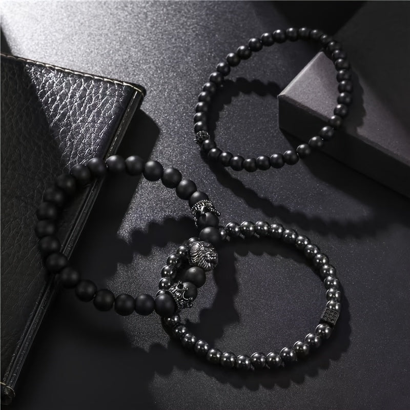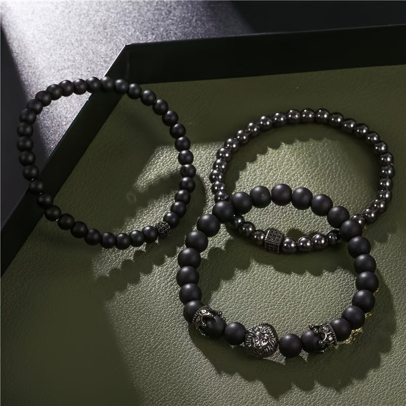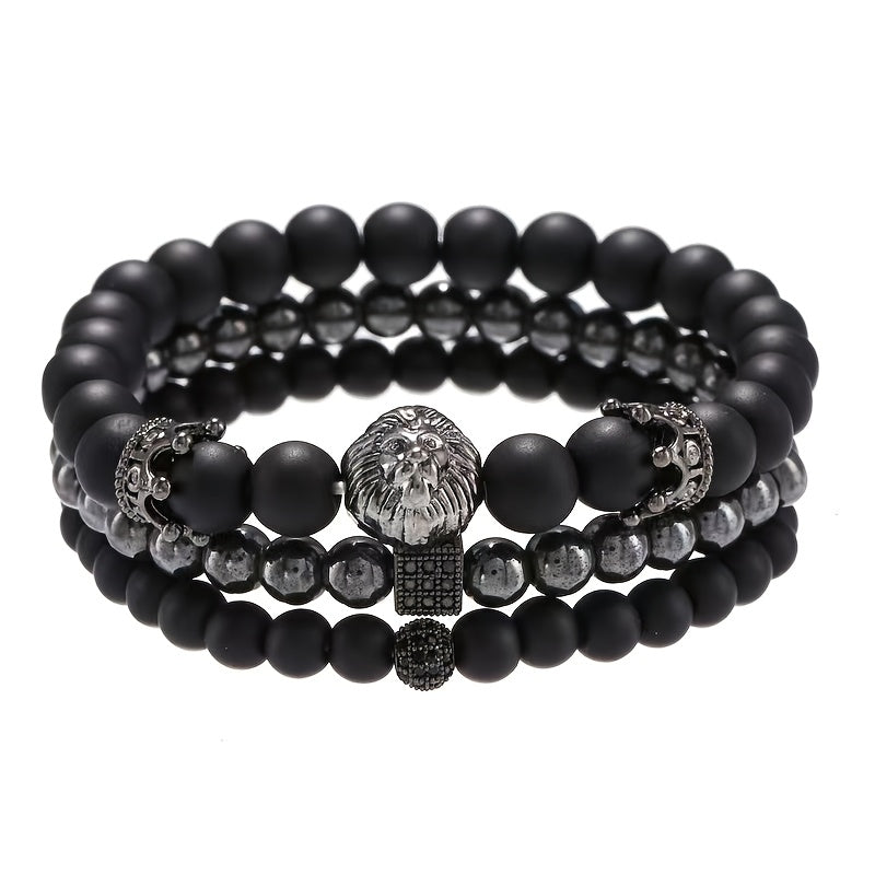 This European and American retro matte bracelet set features a unique design with crown ball, dice, and lion head bead bracelets. Perfect for adding a touch of vintage style to your outfit.