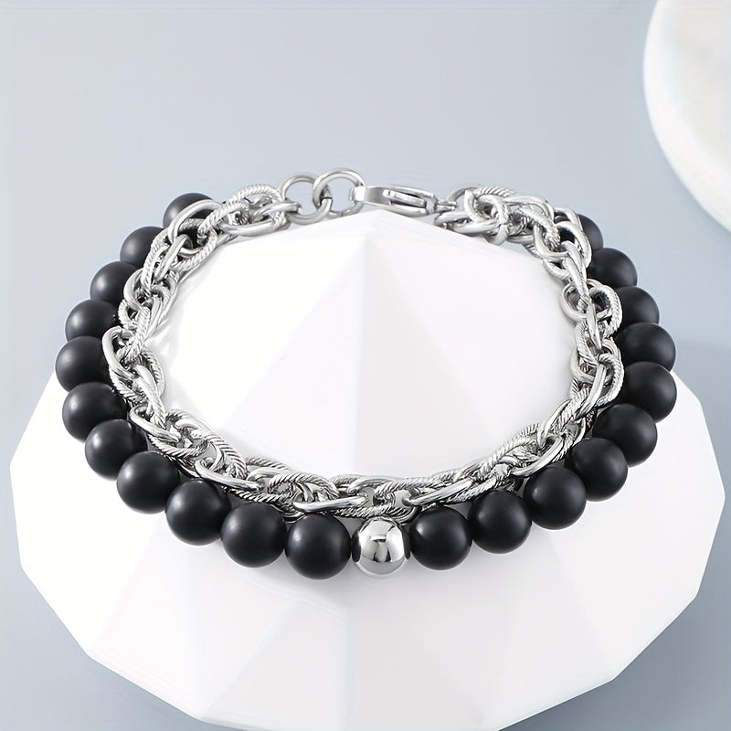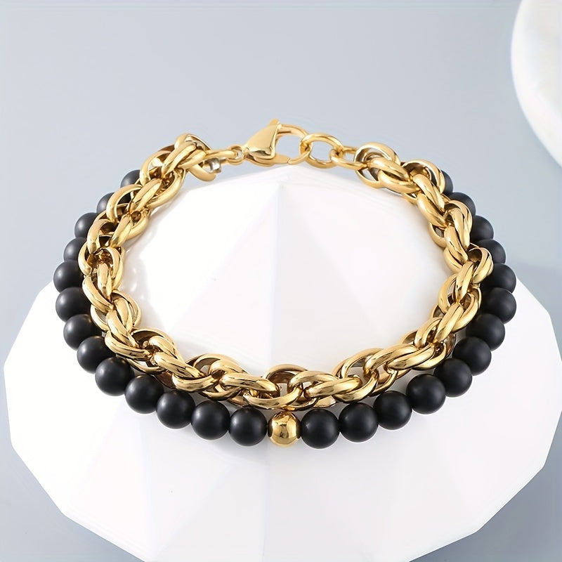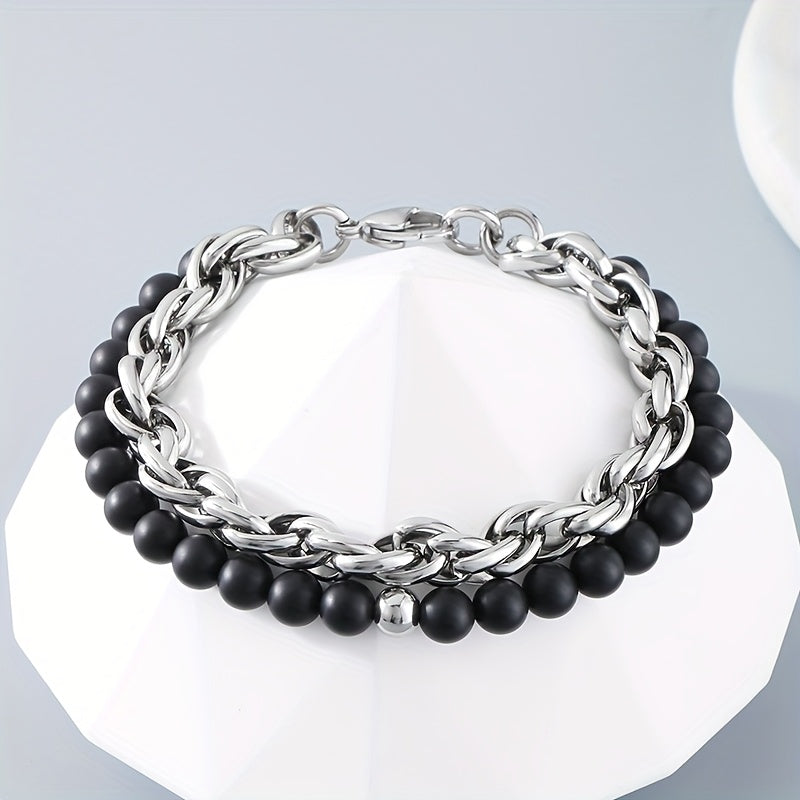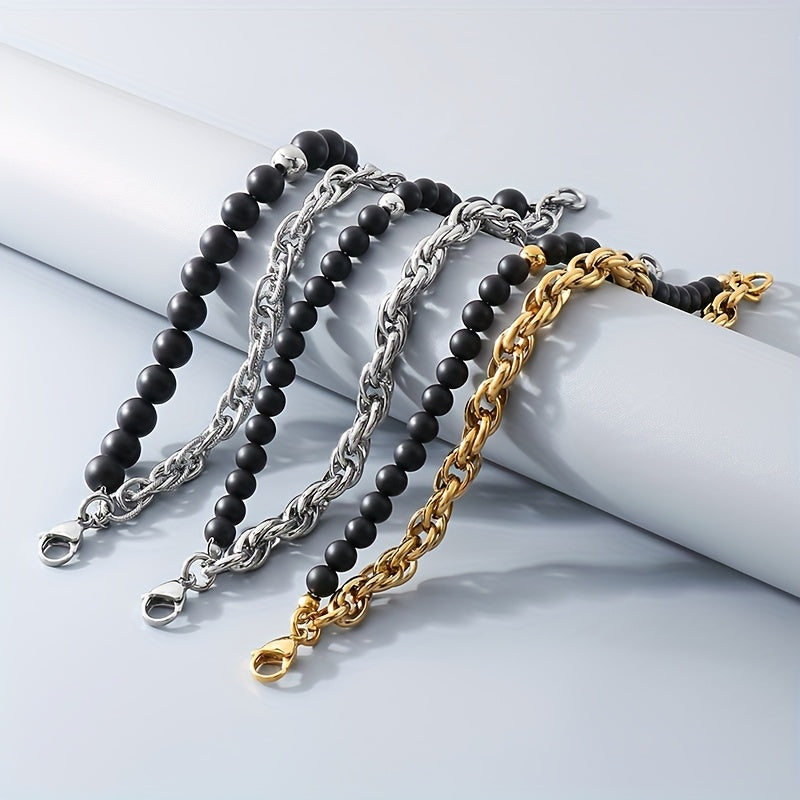 This retro twist bracelet is made of titanium steel with agate accents, perfect for men and women. It's a great birthday gift for someone special.