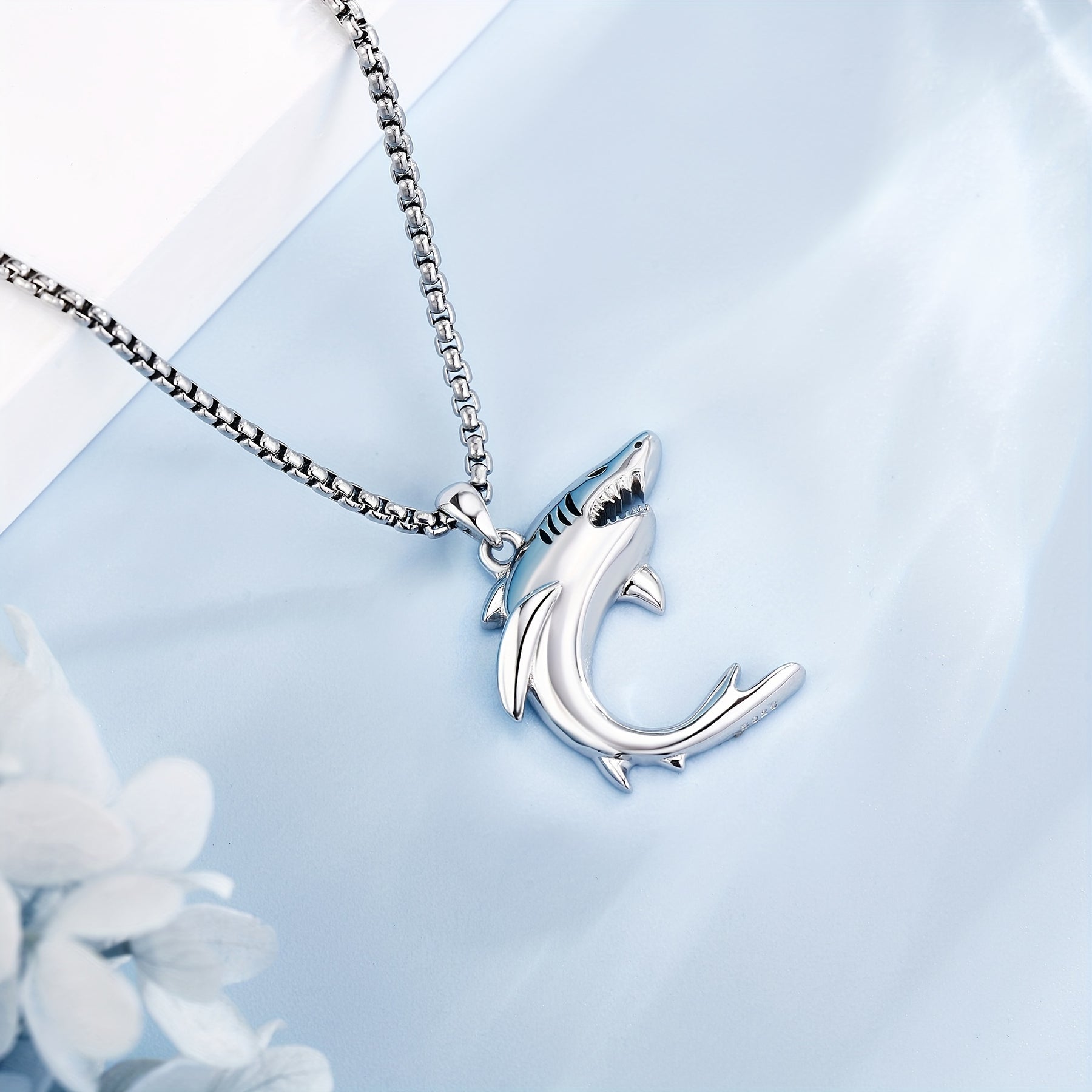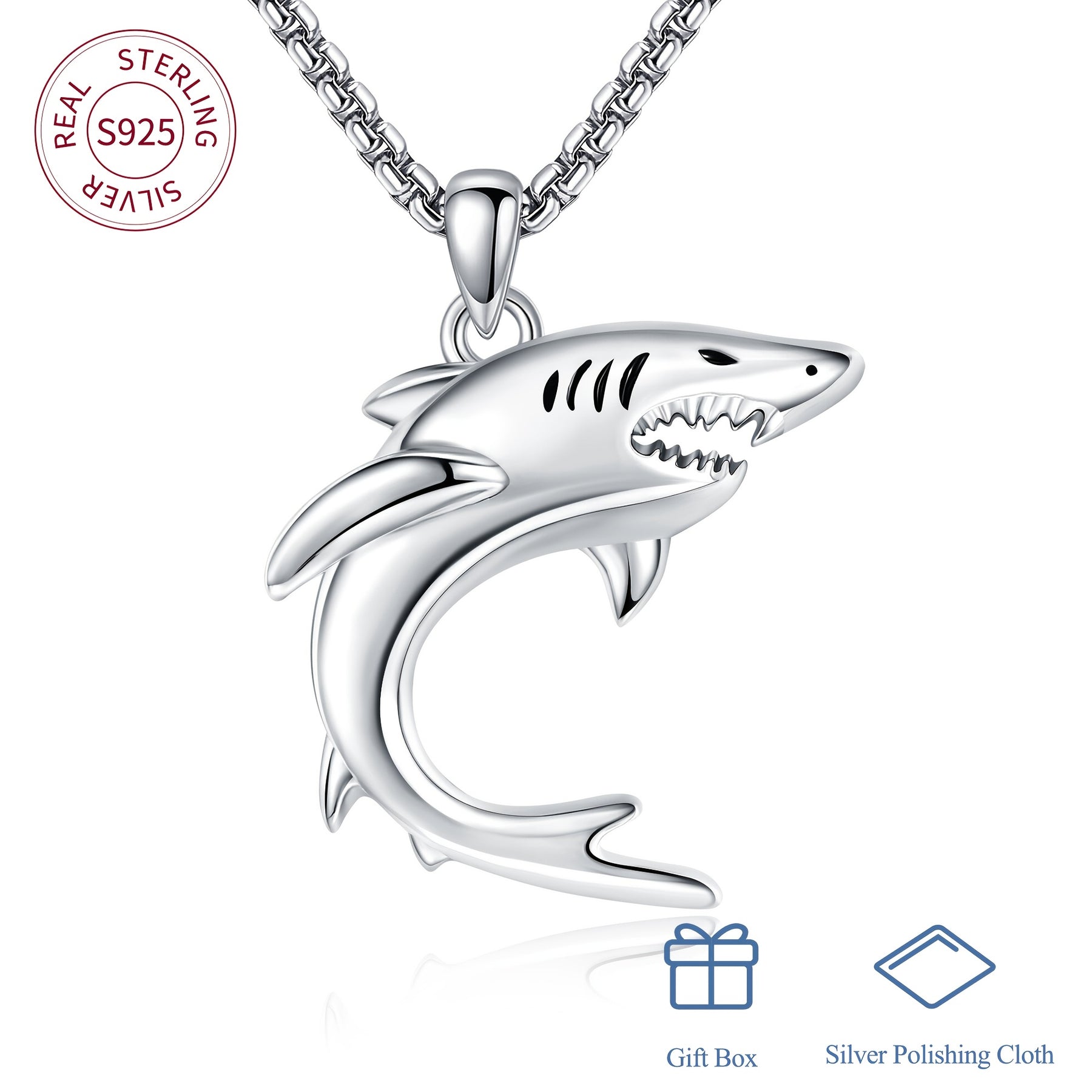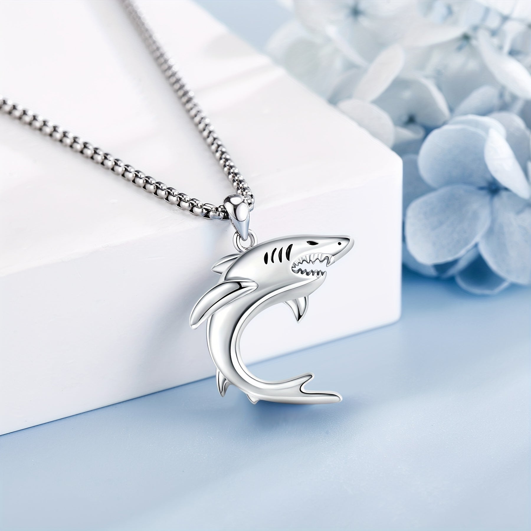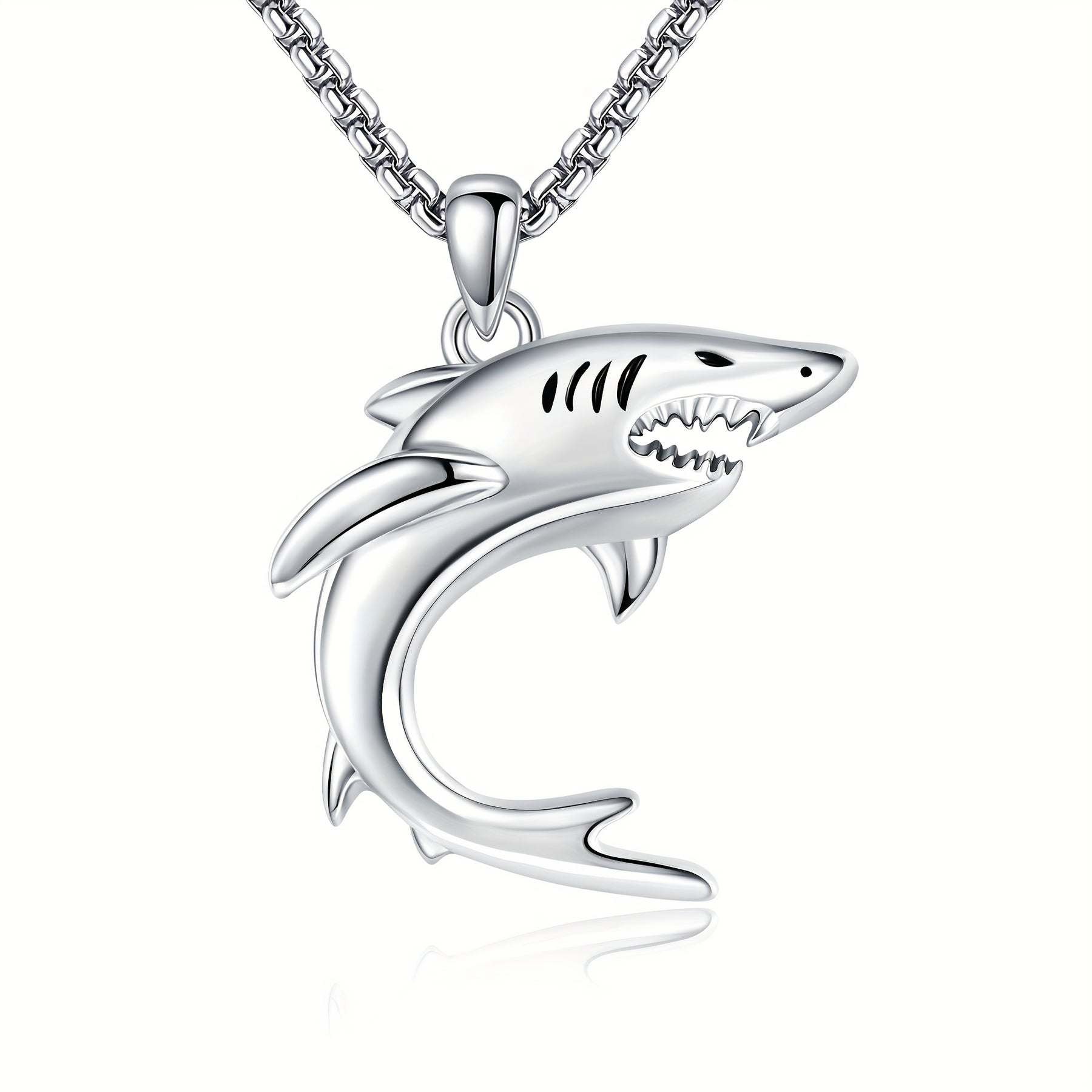 Embrace the beauty of the ocean with this stunning shark pendant necklace. Crafted from 925 sterling silver, this necklace is a perfect accessory for beach lovers and animal enthusiasts.
