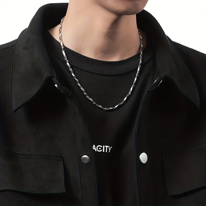 Enhance your style with this stainless steel men's necklace that features a non-fading design. Perfect for hip hop and streetwear fashion.