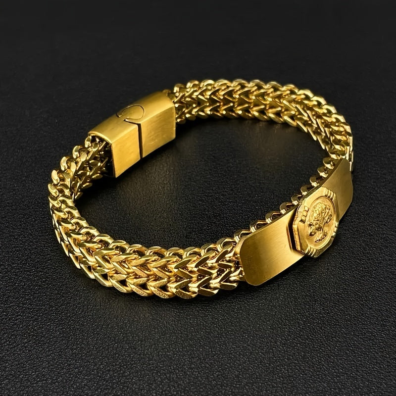 Vintage-inspired bracelet made of titanium steel with a tree of life design. Features a magnetic clasp for easy wear.