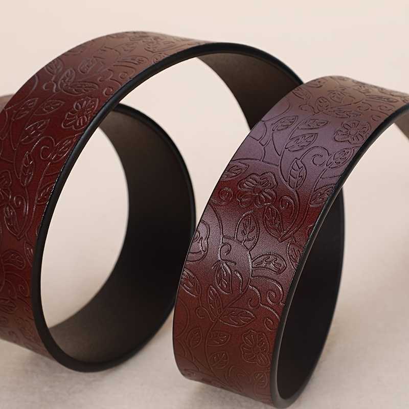 Bling Queen est une marque de bijoux de mode abordable avec différents types de produits comme des bracelets, des colliers, des boucles d'oreilles, des bagues, etc. adaptés aux femmes, aux hommes et aux enfants. La ceinture rétro en cuir de vachette véritable gaufré est un accessoire intemporel alliant à merveille savoir-faire classique et style moderne. Conçue pour les femmes qui apprécient les détails uniques, cette ceinture sublimera une grande variété de tenues, du jean décontracté au pantalon tailleur. Confectionnée en cuir de vachette de haute qualité, elle offre une sensation de luxe. Le cuir véritable garantit non seulement une longue durée de vie, mais acquiert également une patine riche avec le temps, lui conférant du caractère. Ses motifs gaufrés complexes lui confèrent une esthétique rétro qui en fait un accessoire remarquable. Son design texturé ajoute de la profondeur et un charme visuel, sublimant n'importe quelle tenue. Avec sa silhouette large, cette ceinture flatte la taille et affiche une allure audacieuse. Sa largeur assure un ajustement parfait tout en sublimant l'ensemble. La boucle carrée gravée apporte une touche de sophistication au design. Elle s'harmonise parfaitement avec le cuir gaufré, créant un look cohérent et élégant.