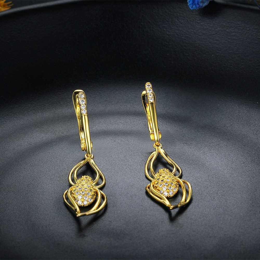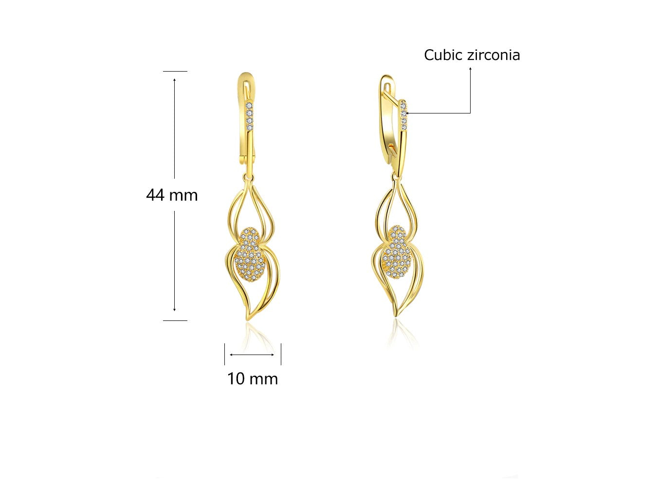 Ces boucles d'oreilles pendantes au design élégant et à la touche unique présentent un motif de feuille torsadée. Des zircones cubiques scintillent au centre. Ces boucles d'oreilles sont fixées avec des fermoirs à charnière. Cette paire respire la classe et le style et conviendra à tous les styles.