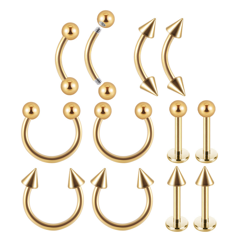 Enhance your piercing collection with this 12-piece stainless steel jewelry set suitable for nose, lip, tongue, and cartilage piercings.