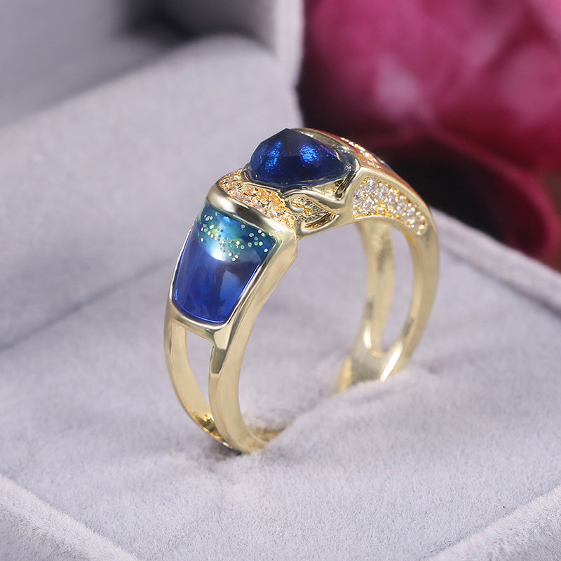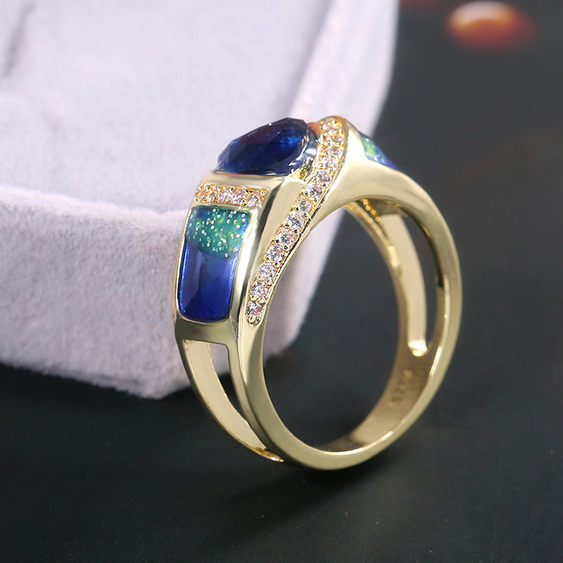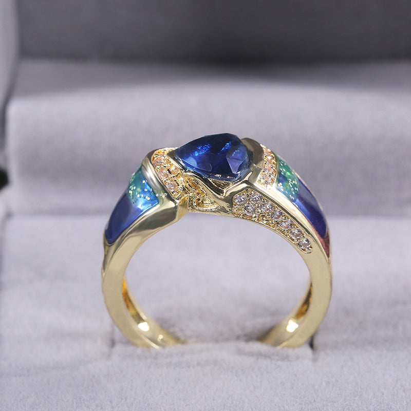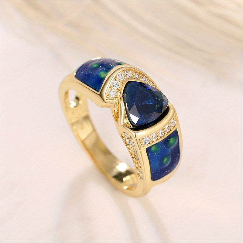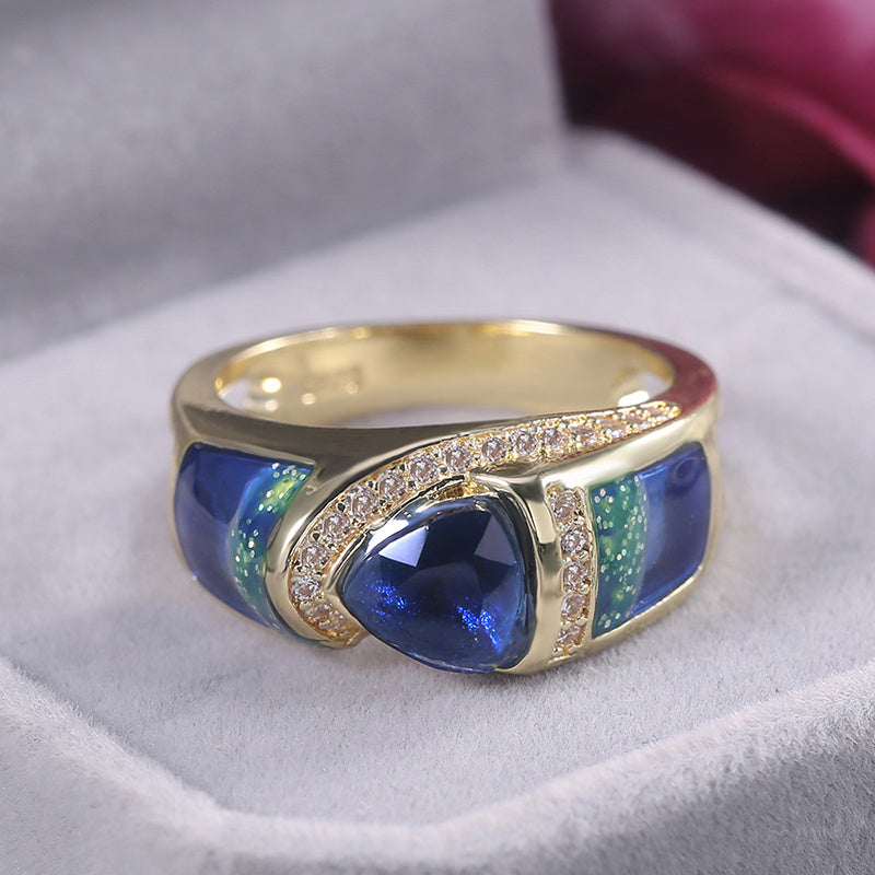 Stunning 18k triangle cut sea crystal ring with small zircon accents. Perfect for weddings, bridesmaids, parties, or as a special gift. Fine jewelry for elegant occasions.