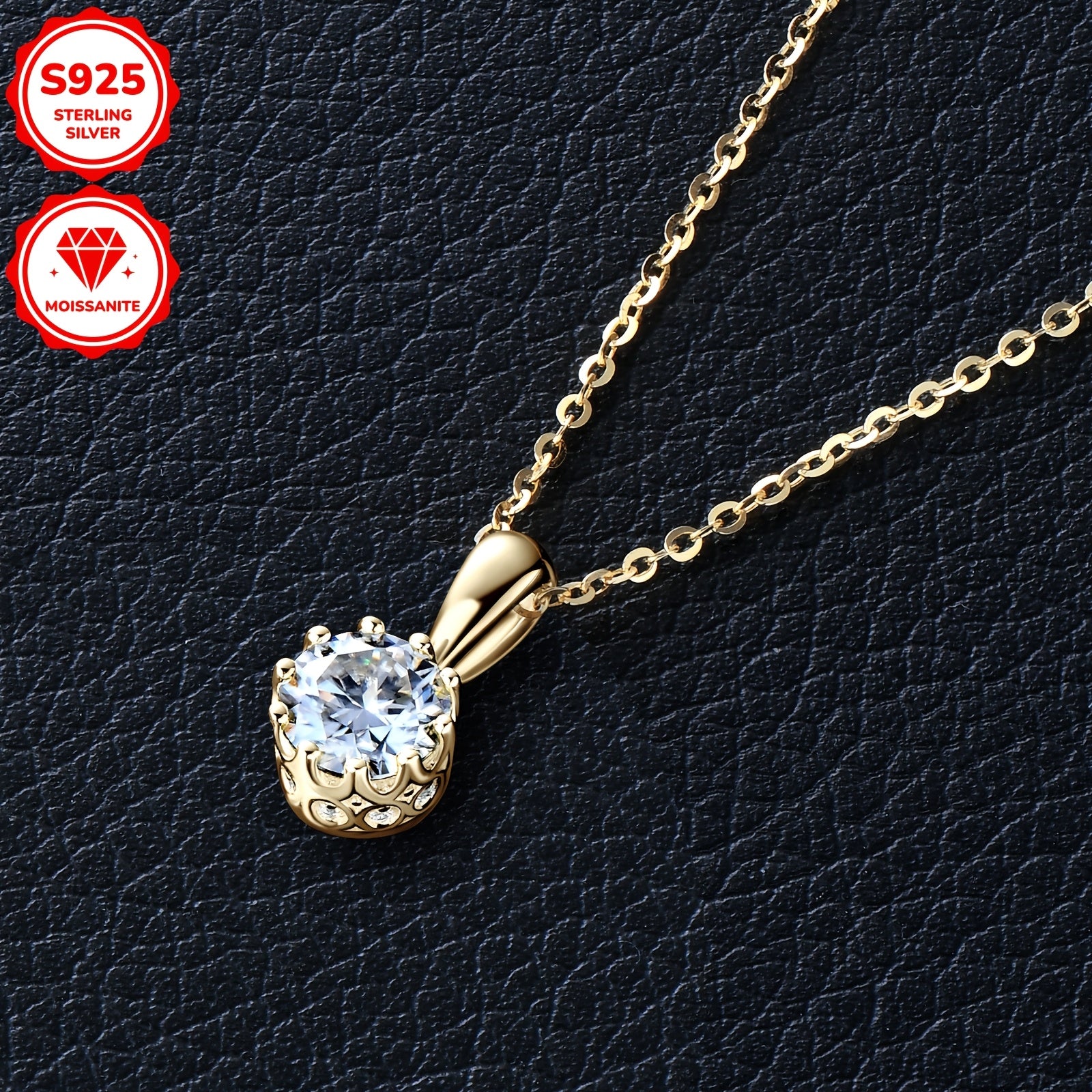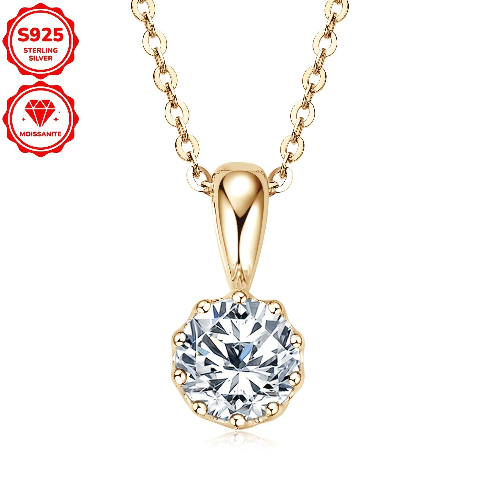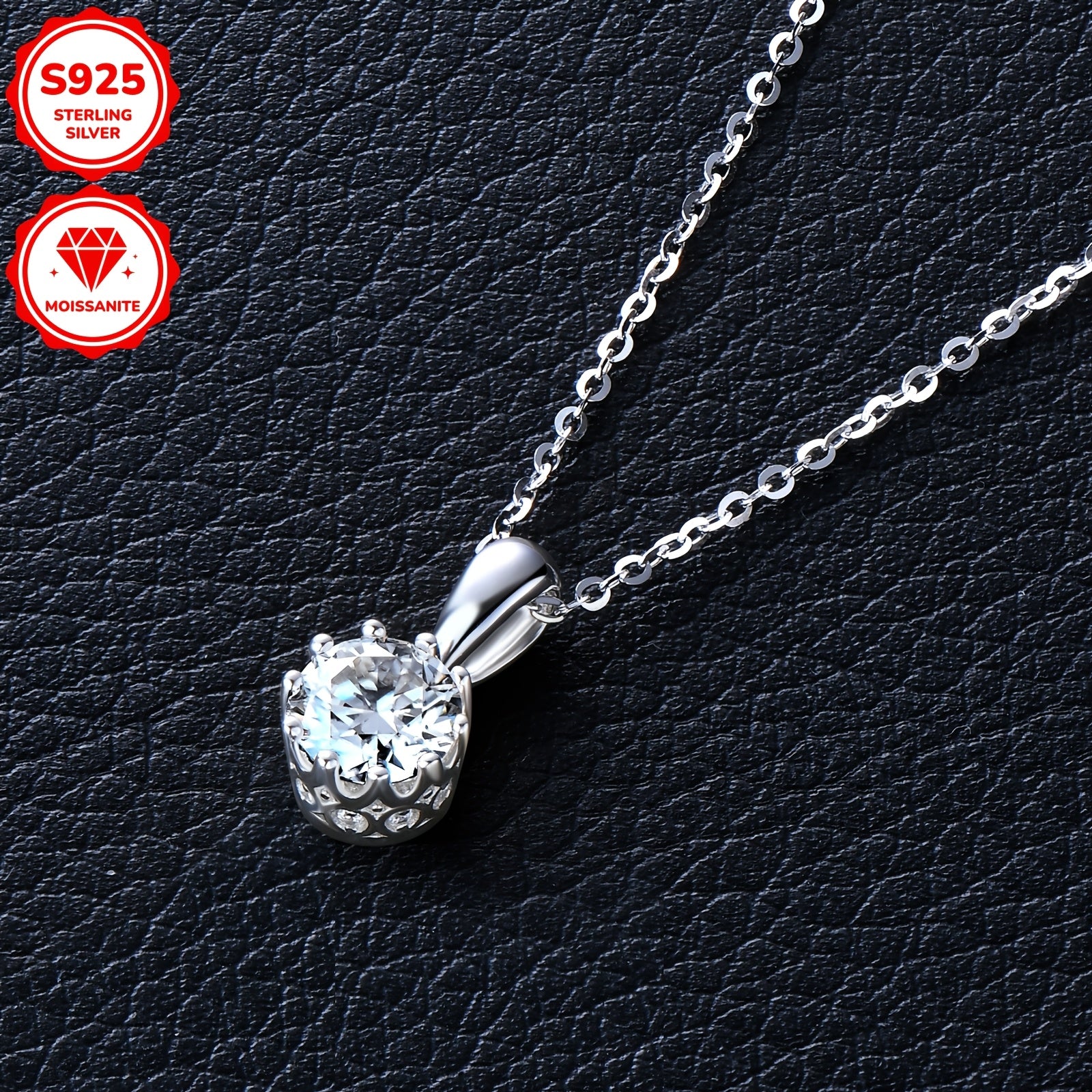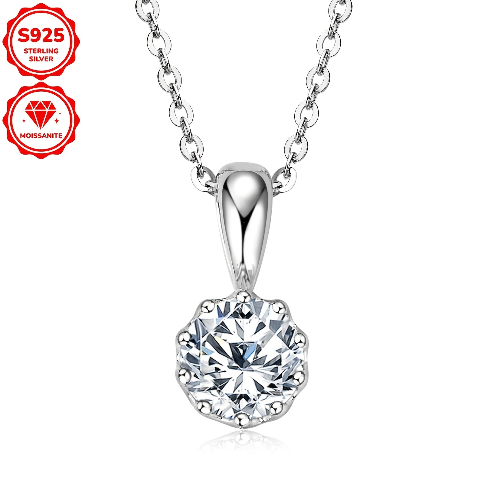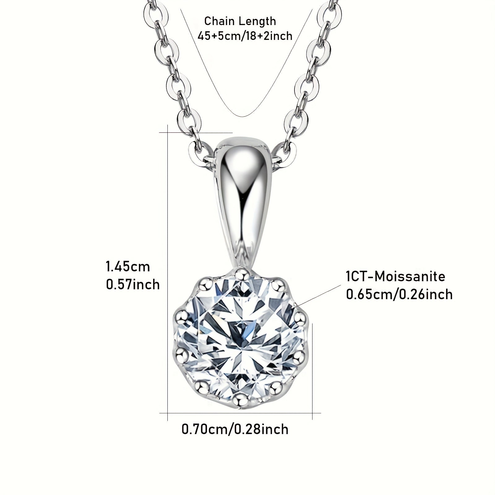 Elegantly designed 1ct round moissanite necklace set in 925 sterling silver for women. This classic pendant is perfect for daily wear or special occasions.