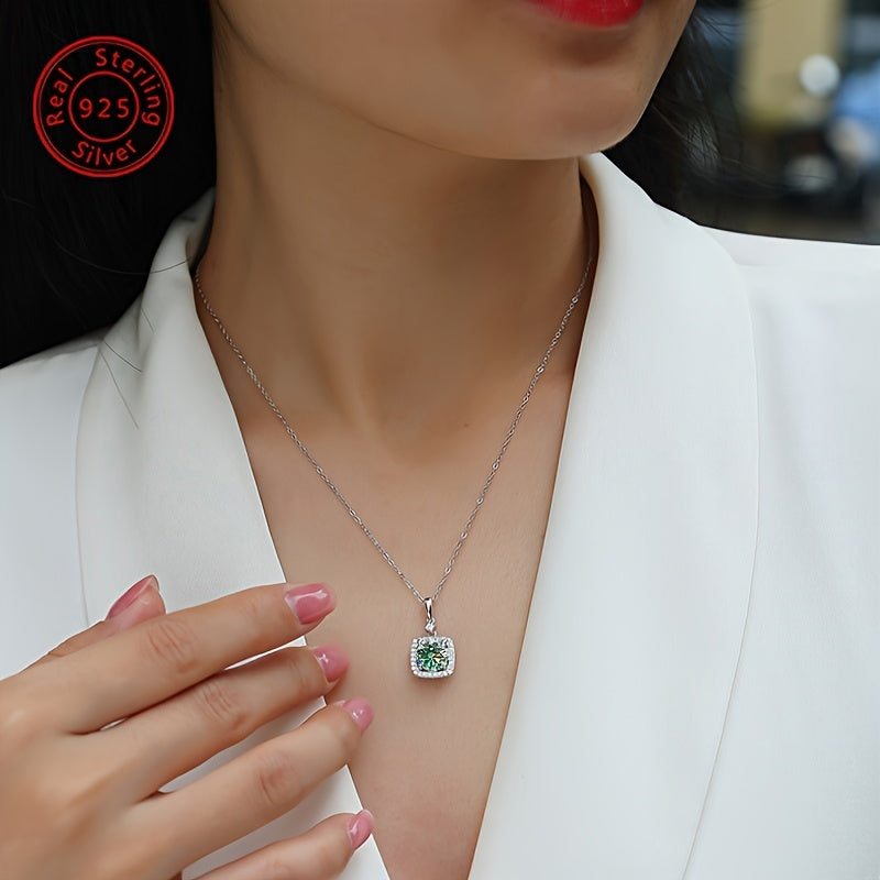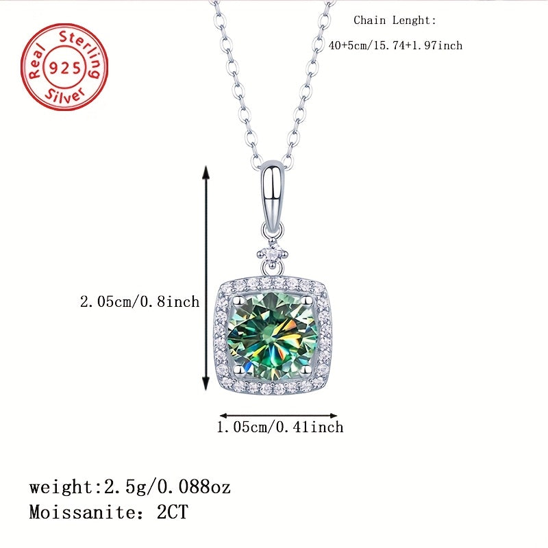 Elegant and versatile, this pendant necklace features a 2 carat Moissanite emerald cut stone set in high-quality 925 sterling silver. Perfect for daily wear, parties, Christmas, Thanksgiving, birthdays, weddings, and anniversaries.