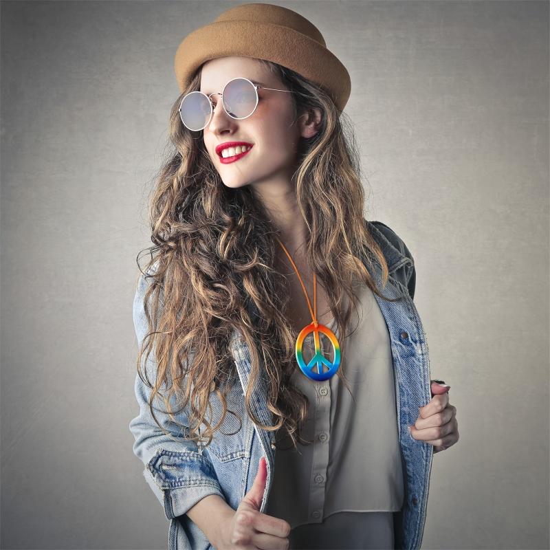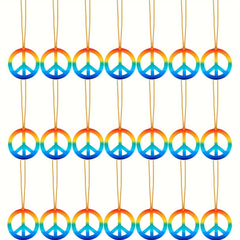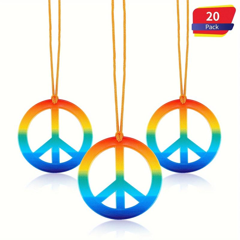 Complete your hippie look with this 20-pack peaces sign pendant necklace set. Perfect accessory for a 60's or 70's themed costume party. Ideal for hippie birthday celebrations and women's accessories.