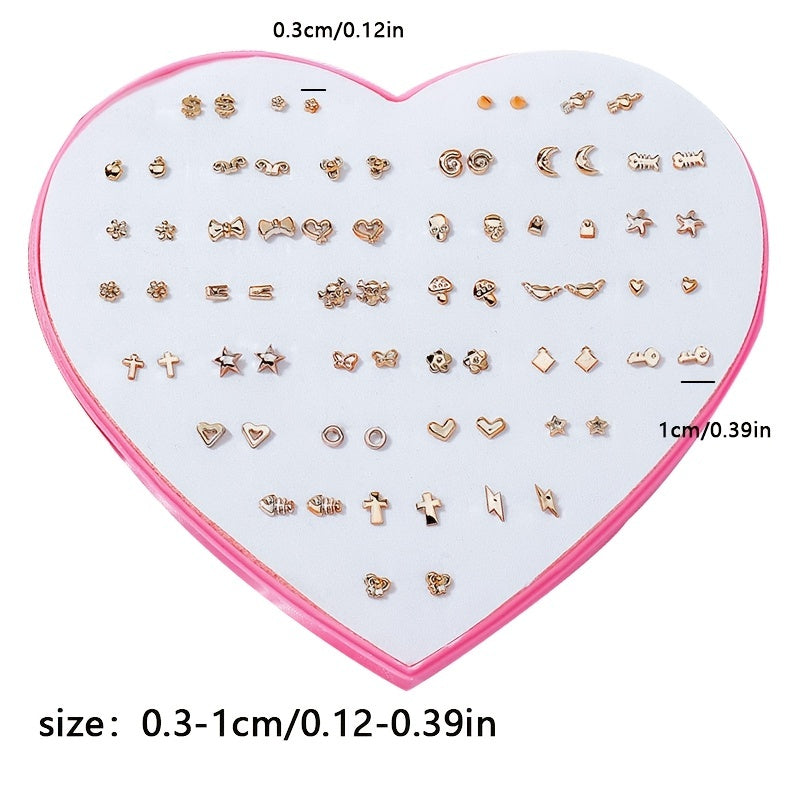 Upgrade your accessory collection with this set of 36 pairs of golden stud earrings. This mixed set is perfect for adding a touch of glamour to any outfit.