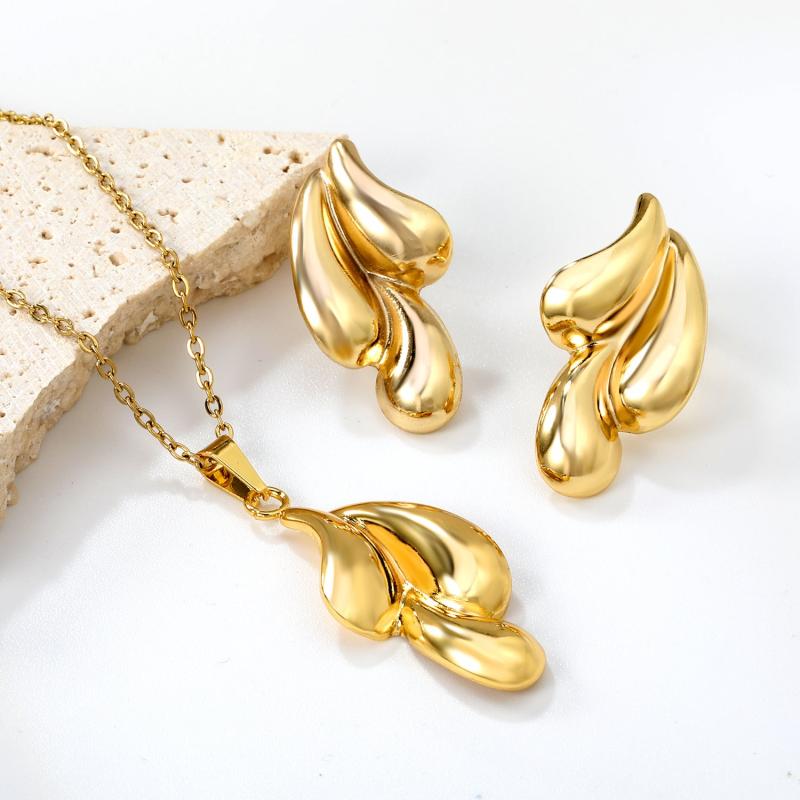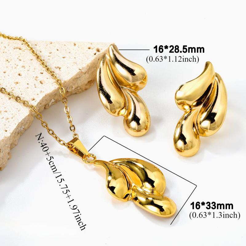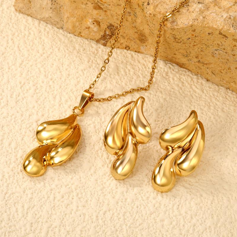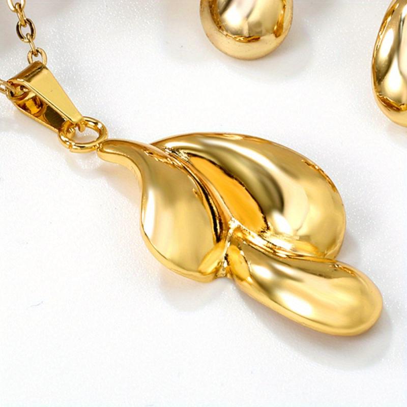 Enhance your look with this stunning 3-piece jewelry set. Made of stainless steel and plated with 18K gold, this set includes French style drop earrings and necklace. Perfect for daily wear, parties, and vacations.