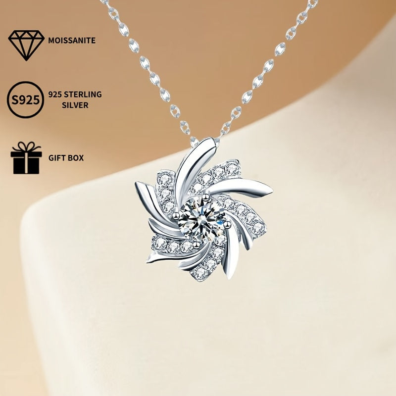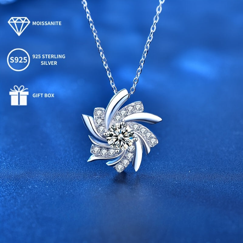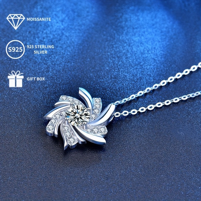 This stunning necklace set features a 5ct Moissanite stone in a Windmill design made of S925 Sterling Silver. It is lightweight at about 3g, perfect for parties, banquets, and other special occasions. Ideal as a gift for Mother's birthday.