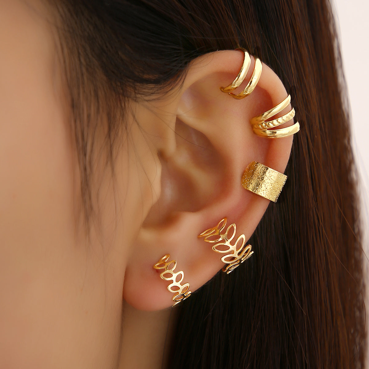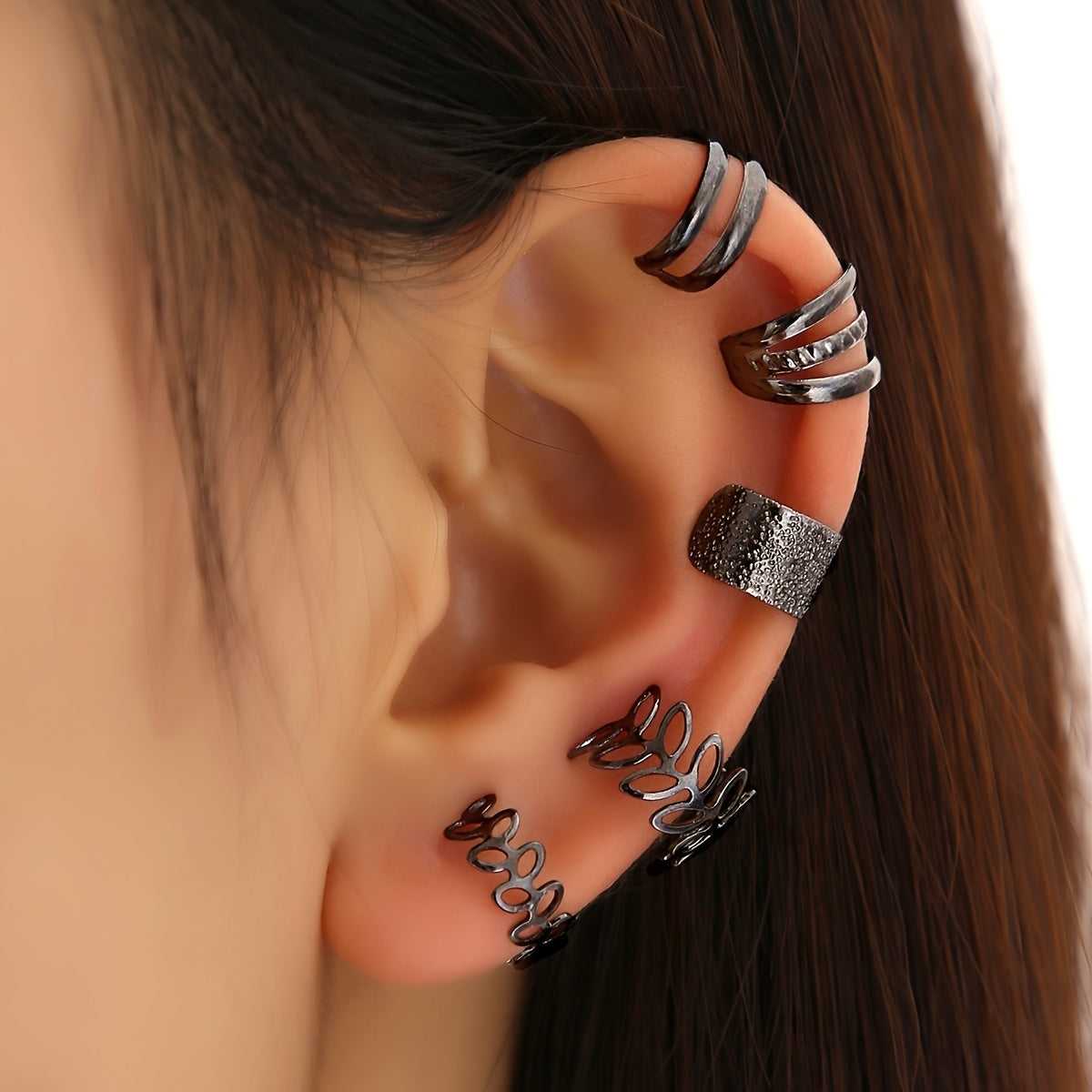 • Set of 5 leaf-shaped ear clips