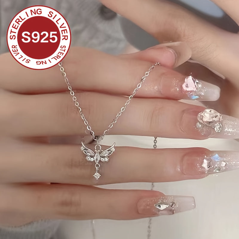 925 Angel Wings Butterfly Necklace Small High-end Tassel Clavicle Chain