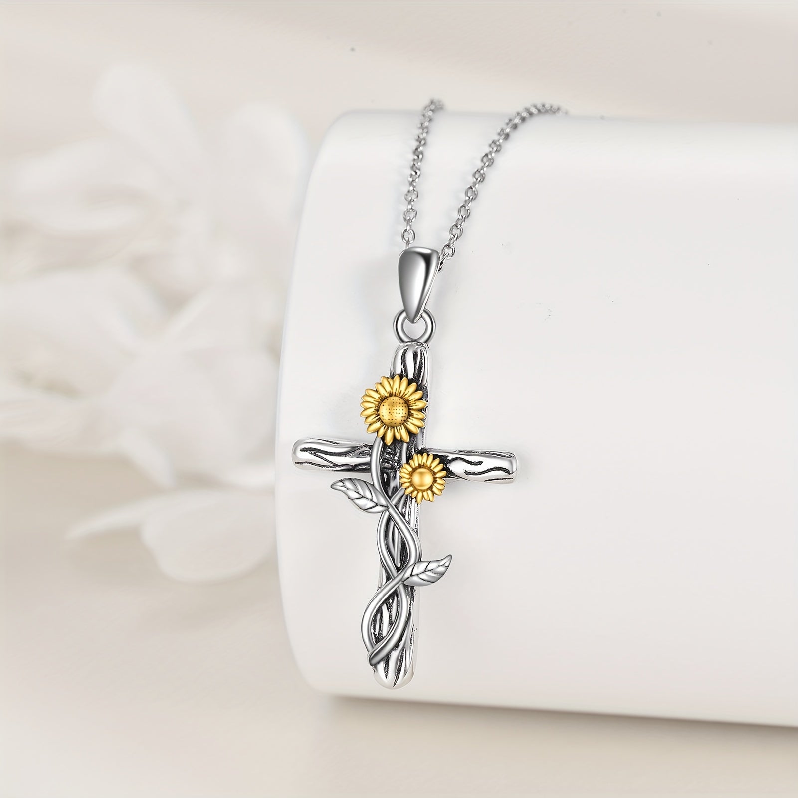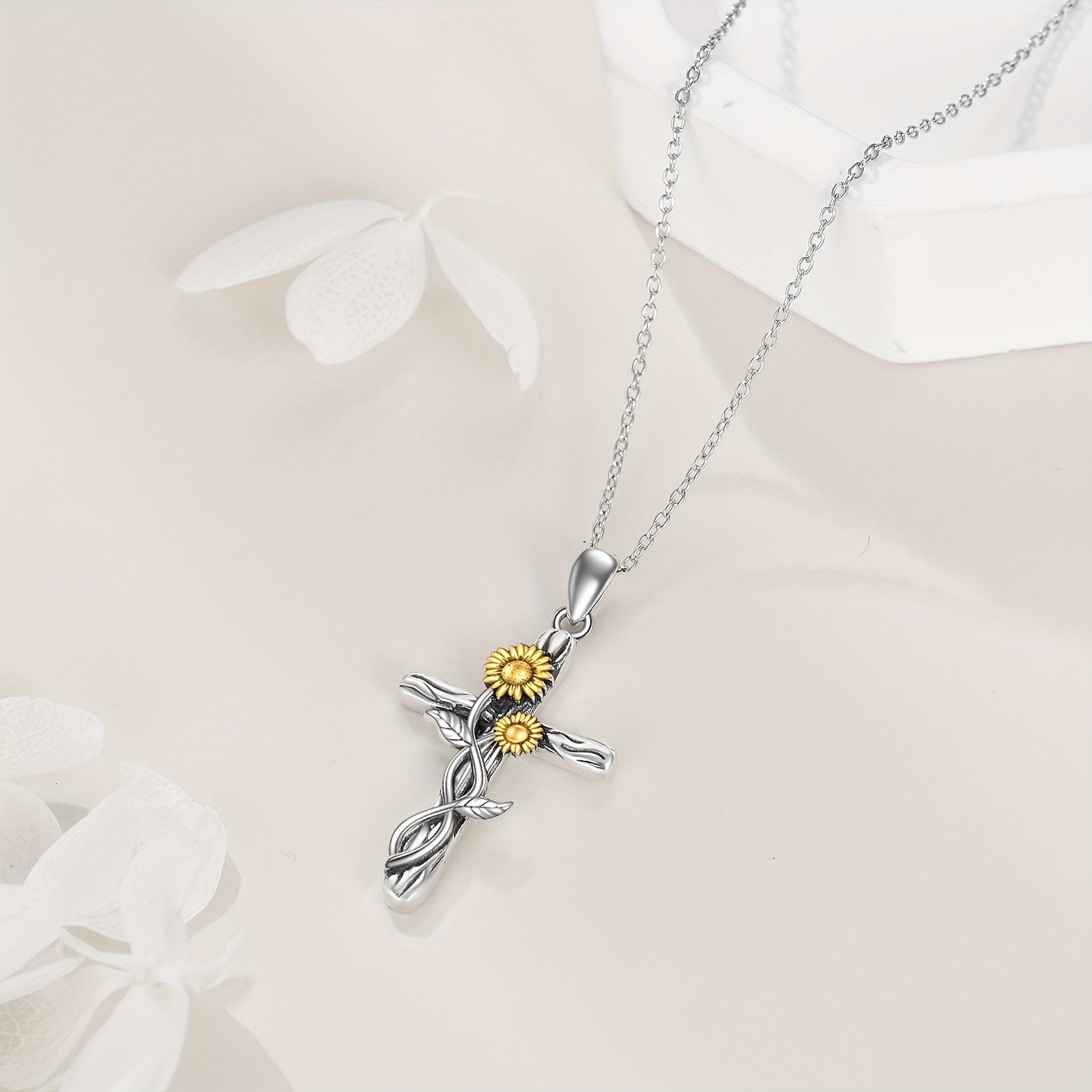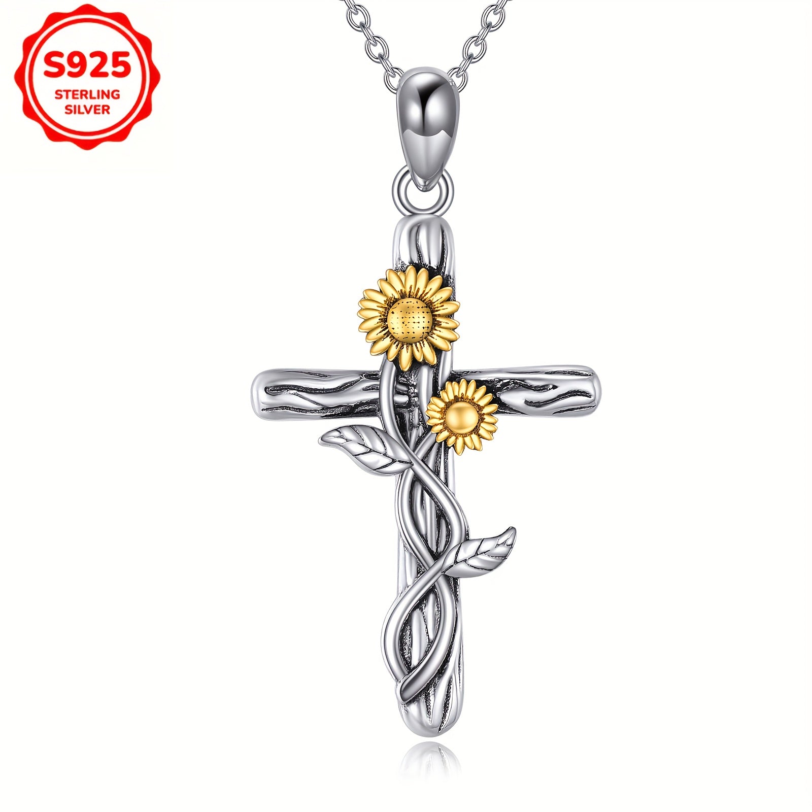 Elegant sunflower cross pendant necklace made of 925 pure silver.