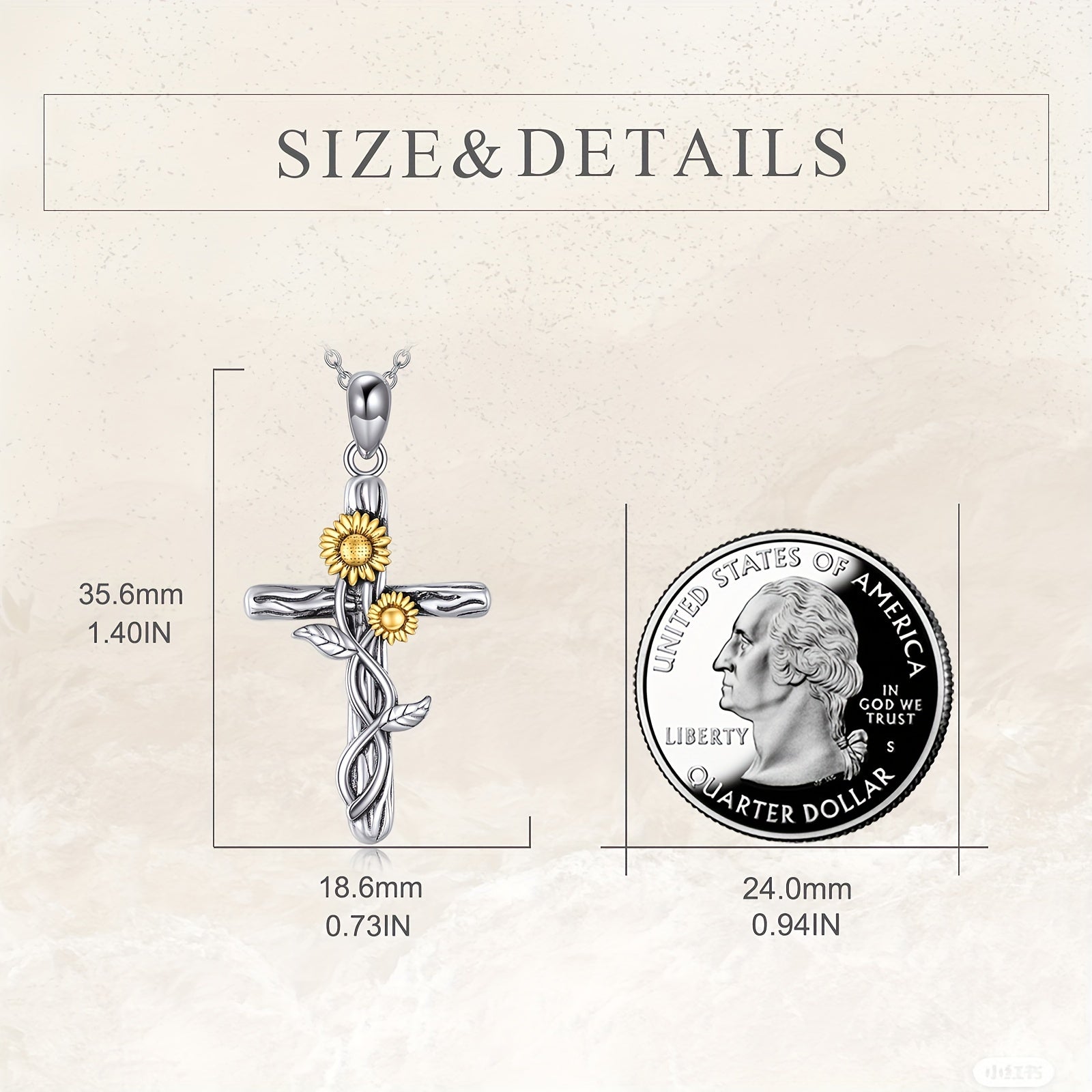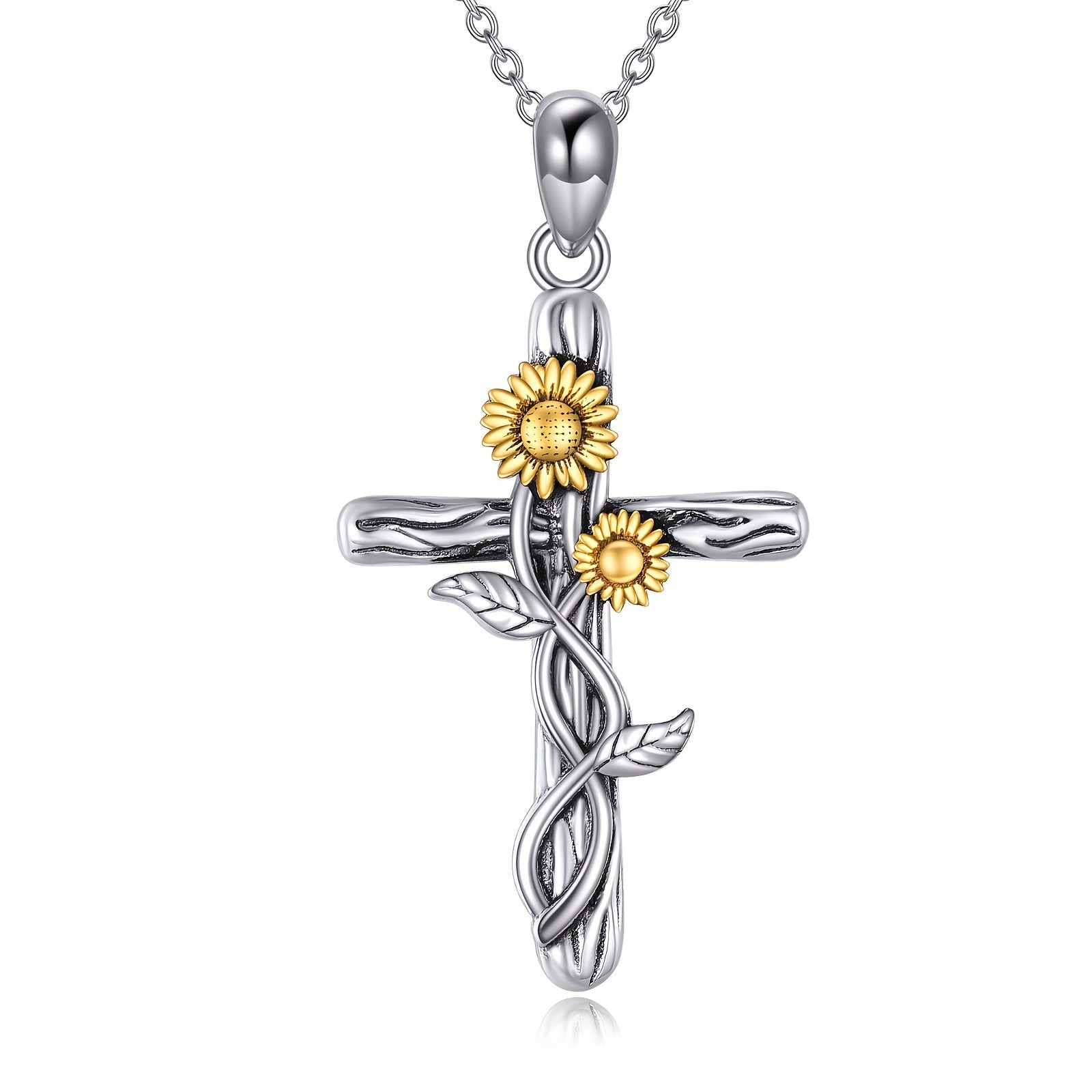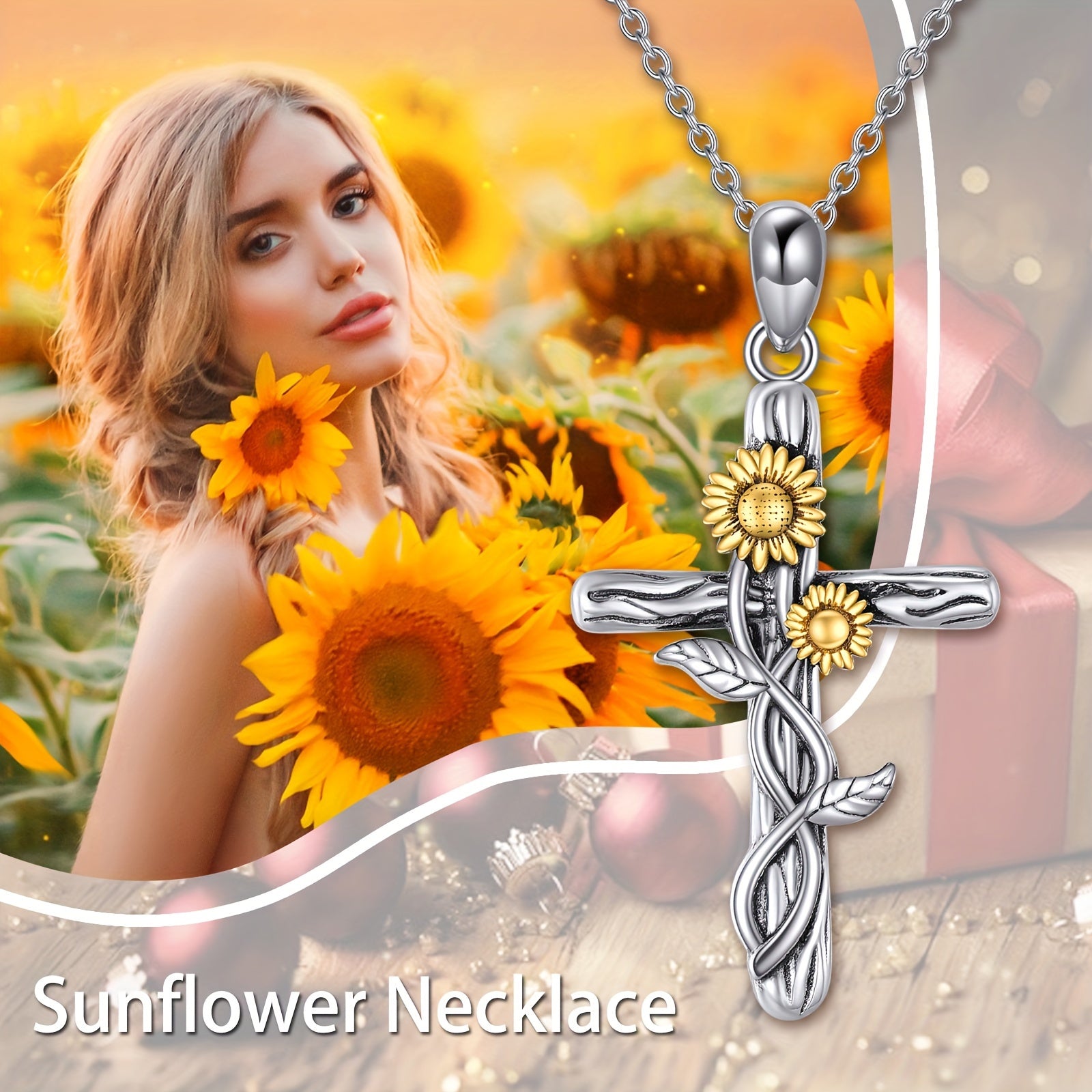 Elegant sunflower cross pendant necklace made of 925 pure silver.