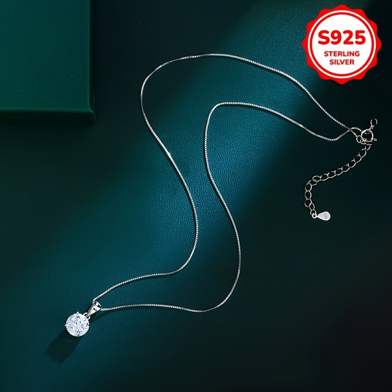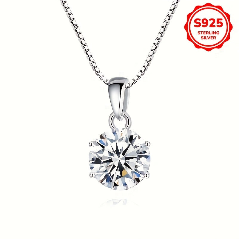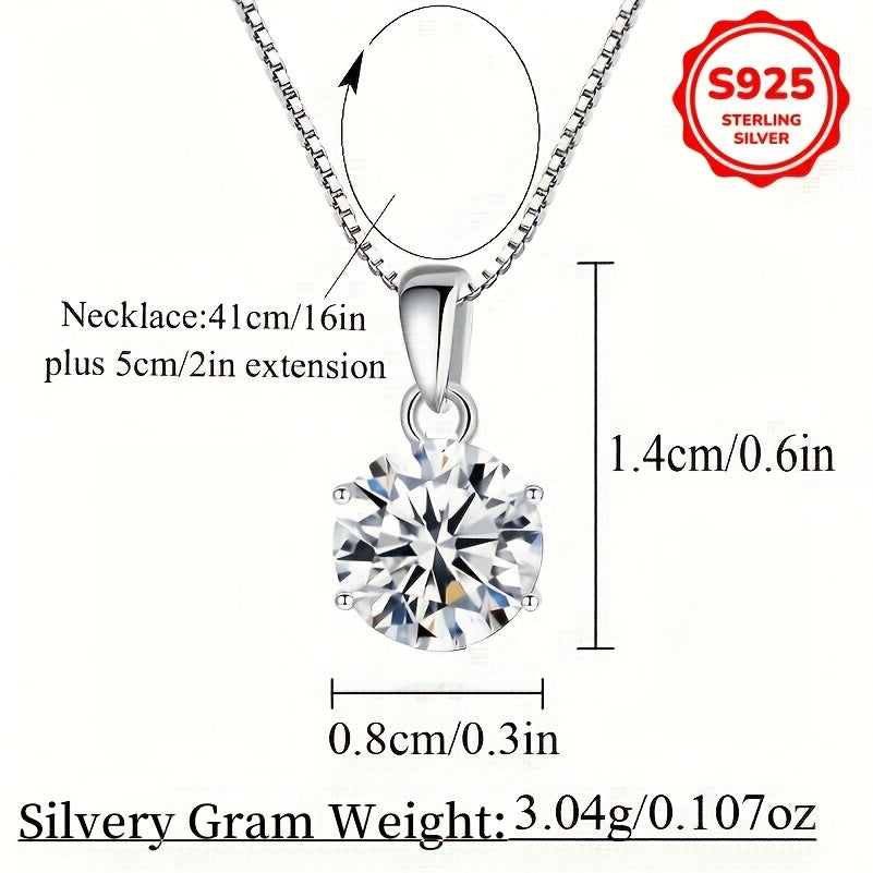 Classic round cut synthetic zirconia in a 925 pure silvery setting. Weighs 3.04g (0.107oz) and features a 4 prong design.