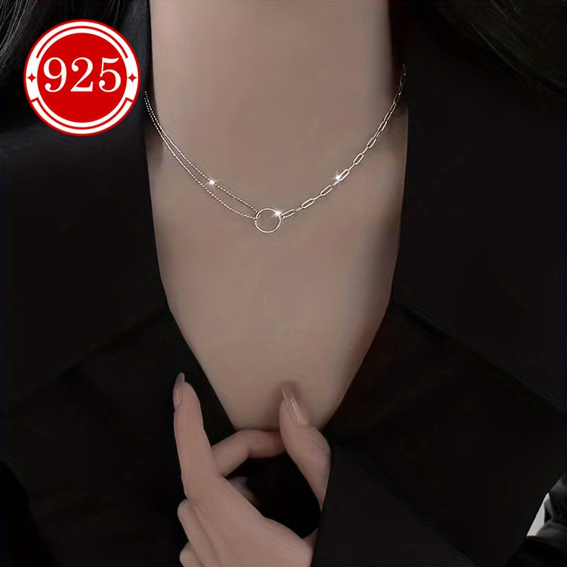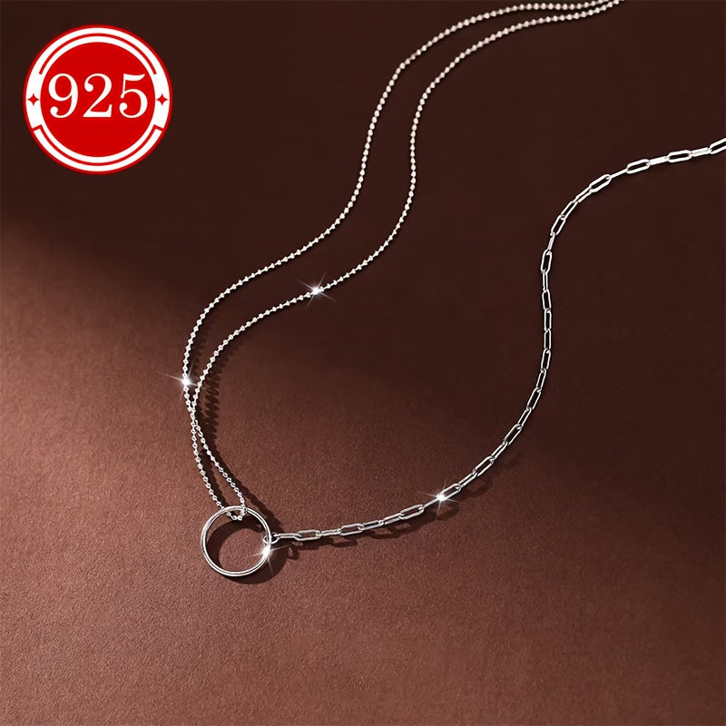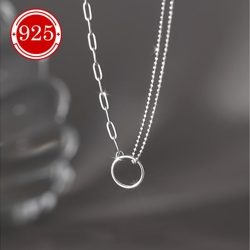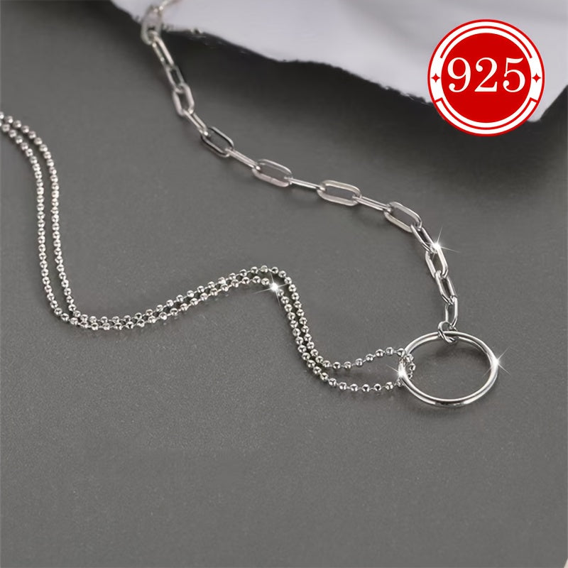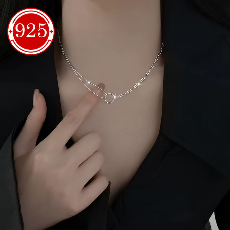 This high-end, low-allergy necklace features an asymmetric design with stitched details and a round ring clavicle chain. Perfect as a gift for couples or friends.
