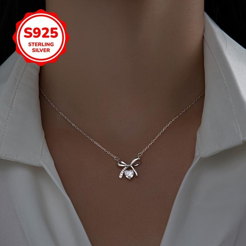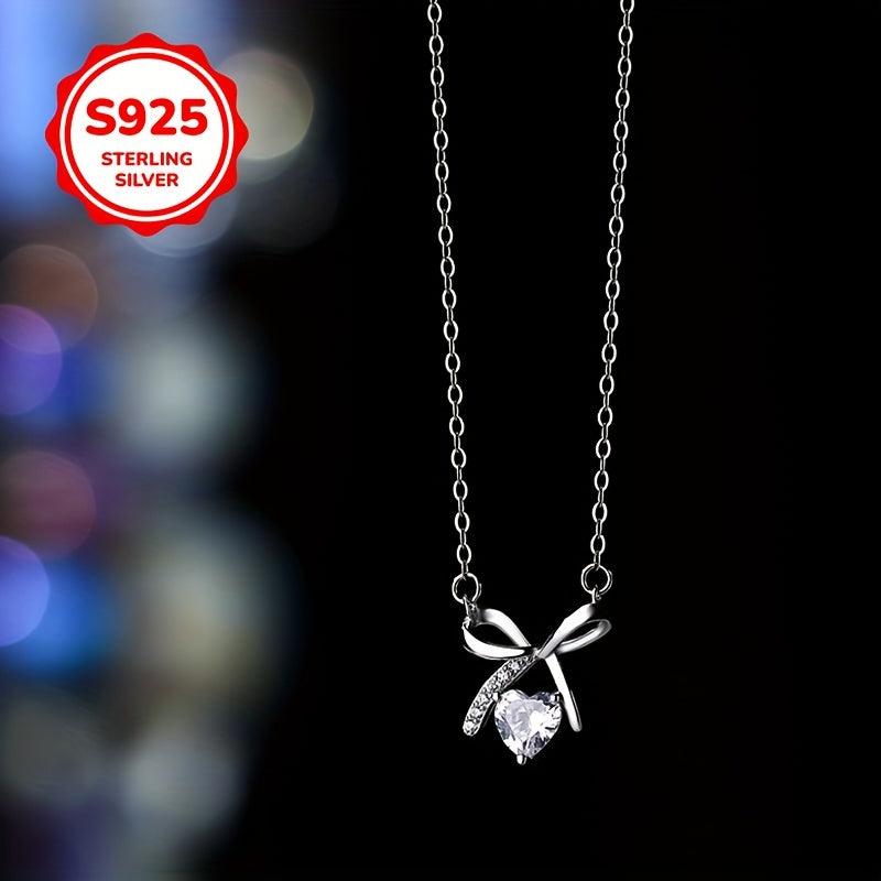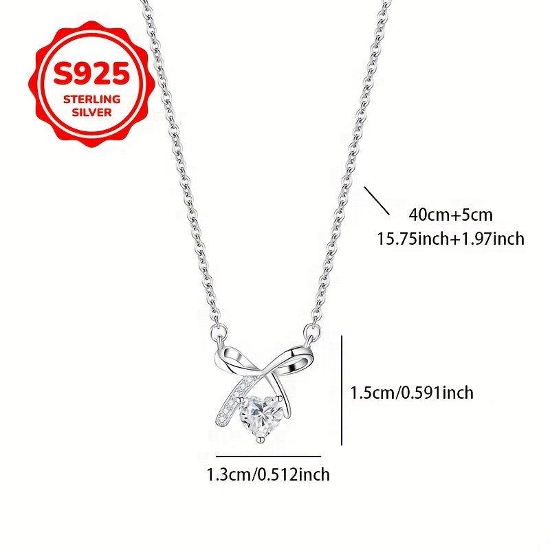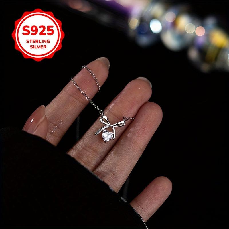 Elegant 925 silver twisted bow heart necklace on a stylish and versatile collarbone chain. Perfect for gifting to couples, friends, or as an accessory.