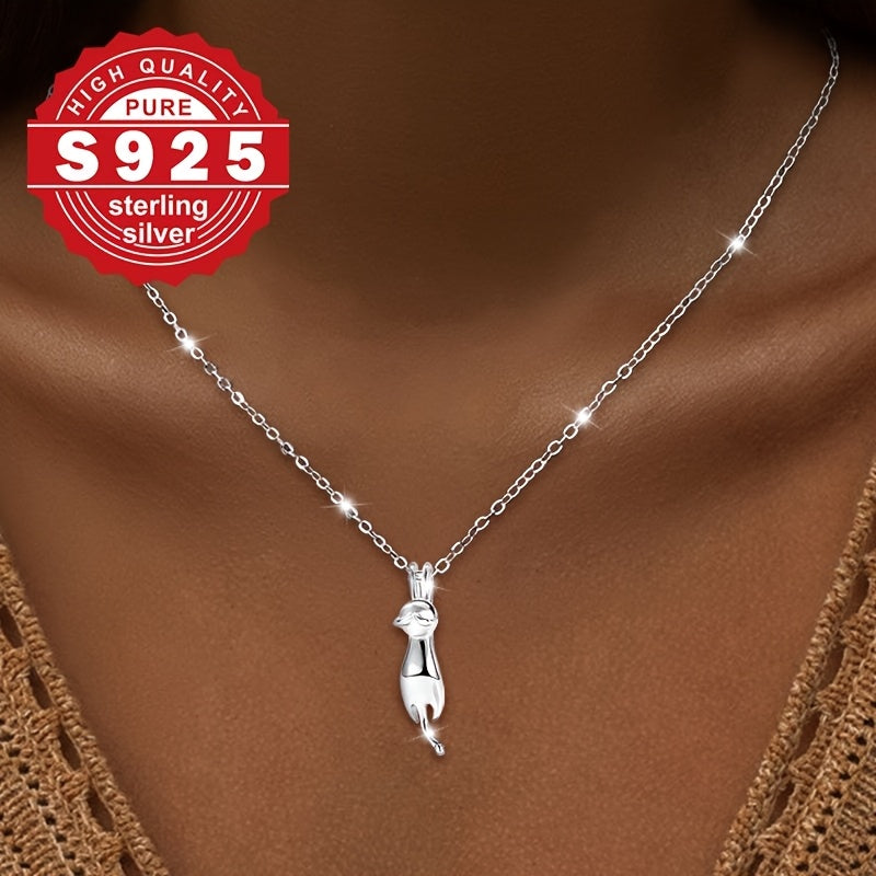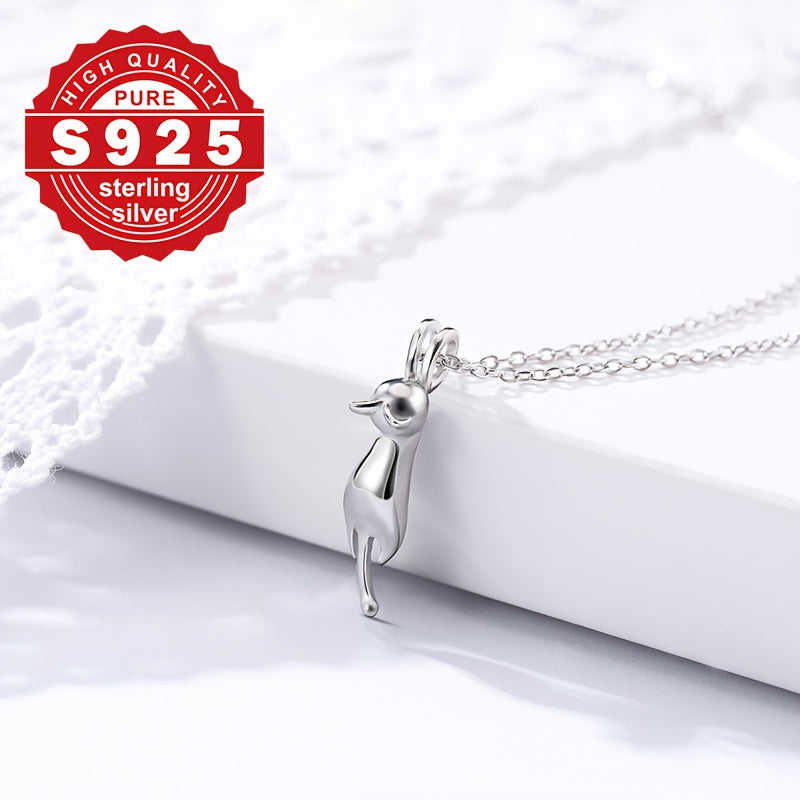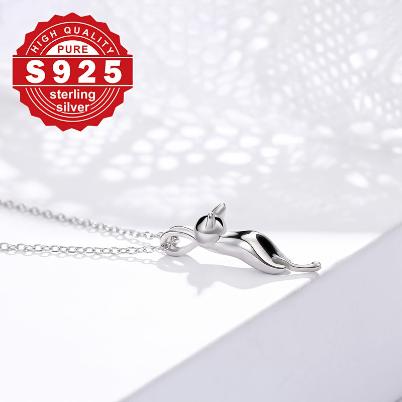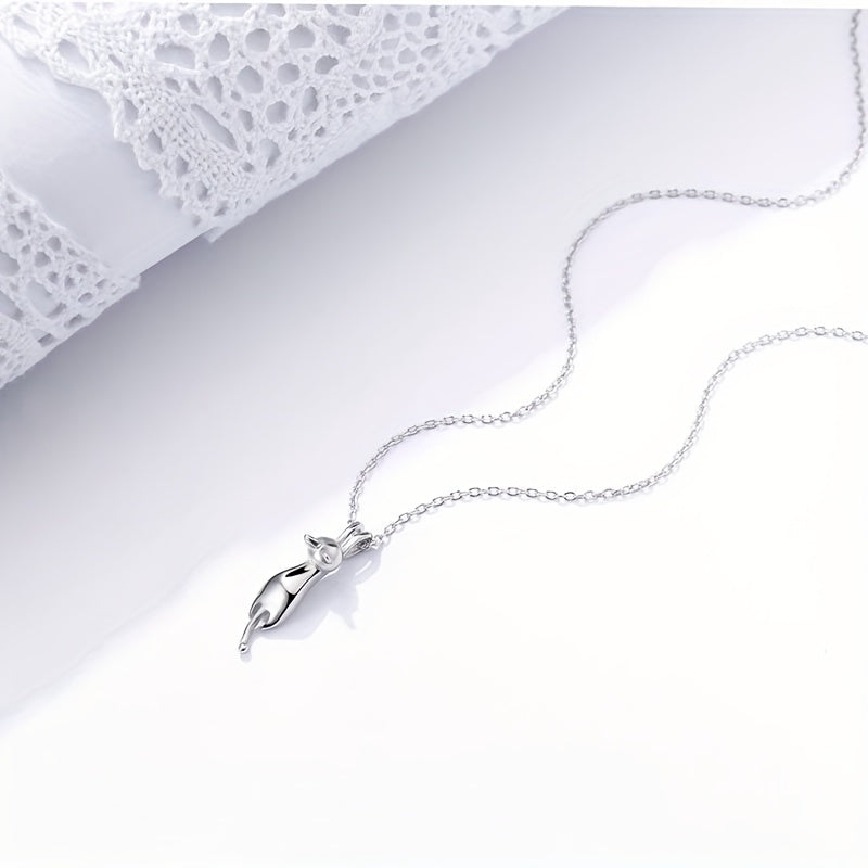 Delightful cat-shaped pendant necklace made of pure silver, perfect for daily wear with low allergy risk.