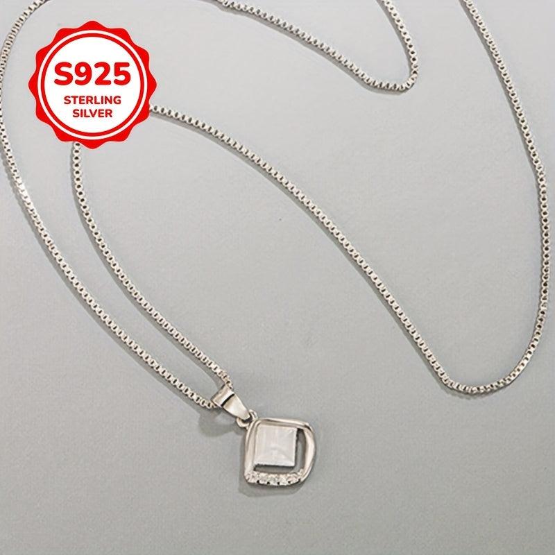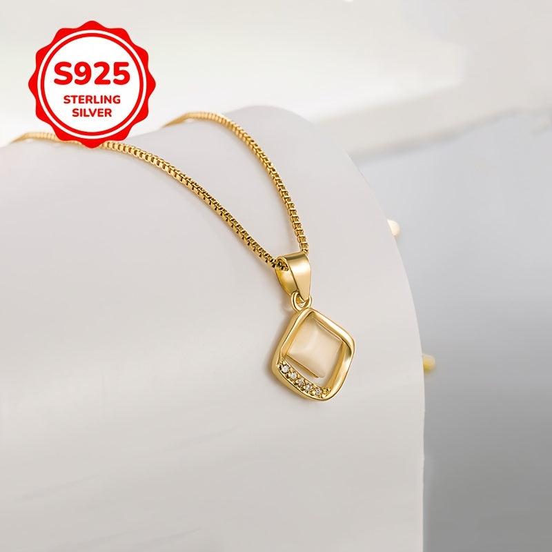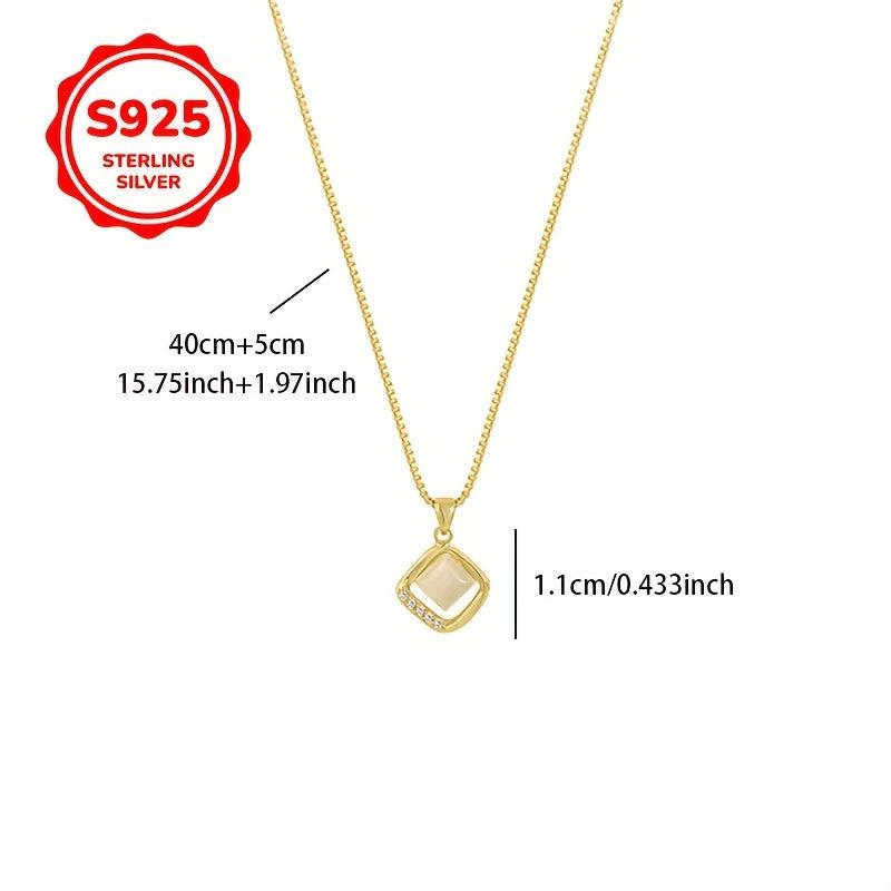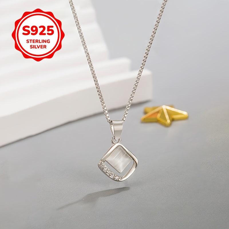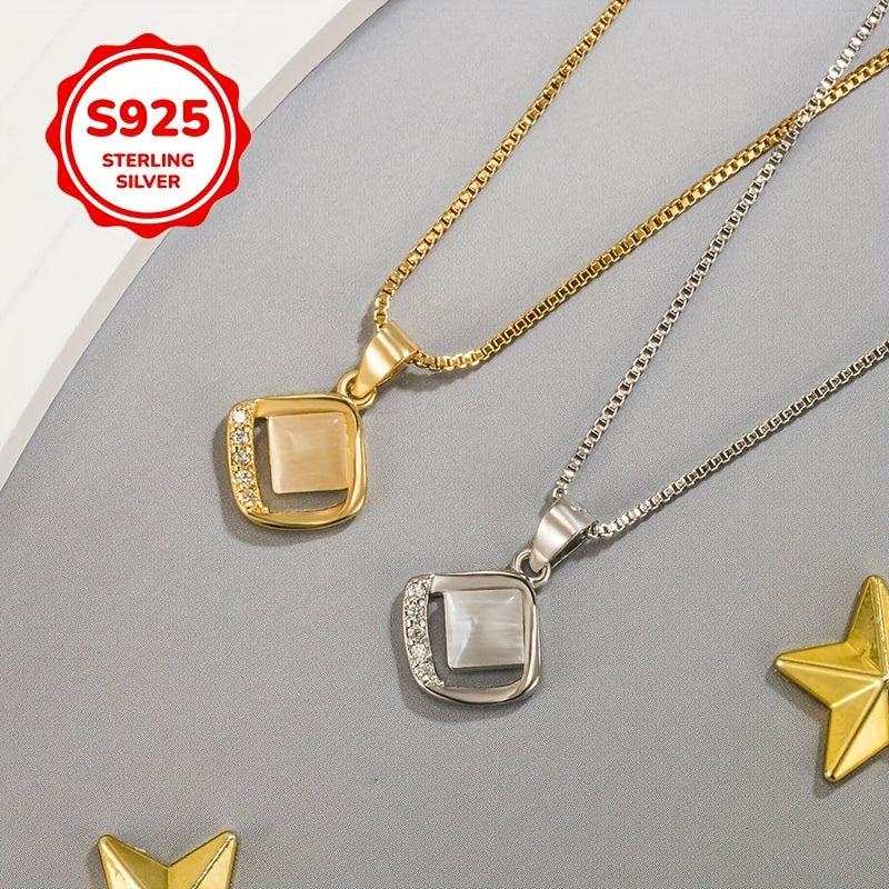 925 Silver Cat'S Eye Stone Chip Rhombus Pendant Necklace