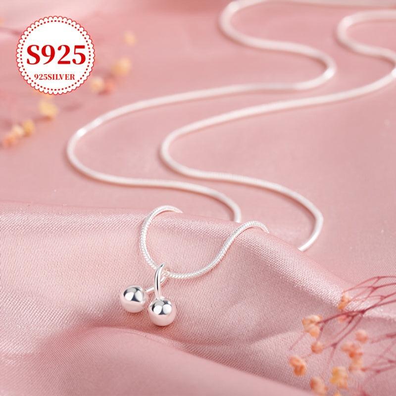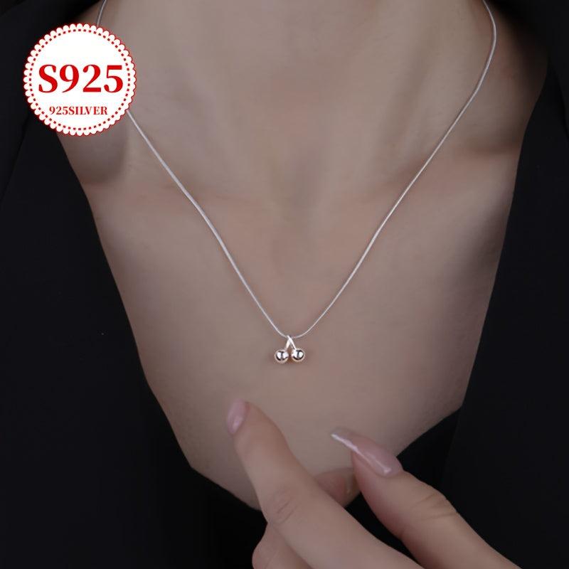 This stunning cherry shaped pendant necklace is made of 925 sterling silver and features sparkling stones. It is perfect for daily wear or as a Valentine's or Mother's Day gift. The snake chain adds a touch of elegance to any outfit.