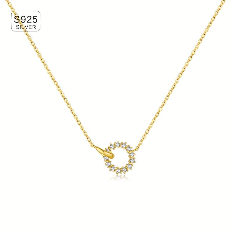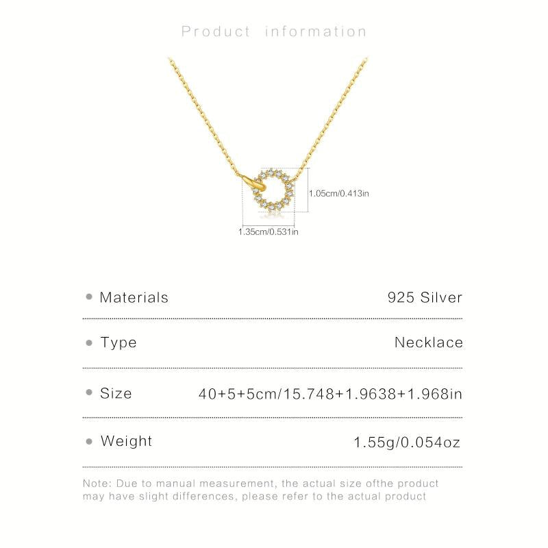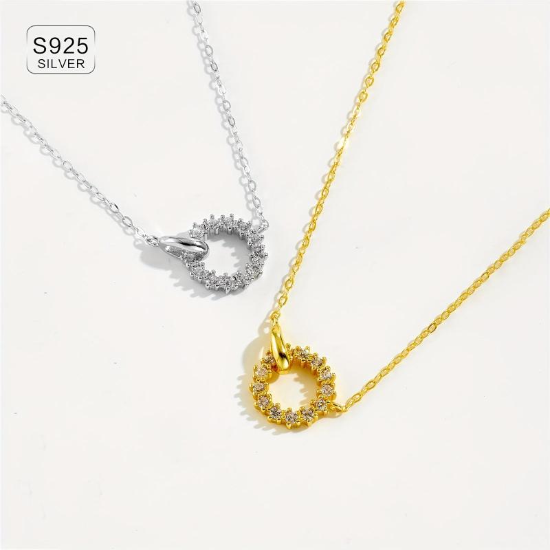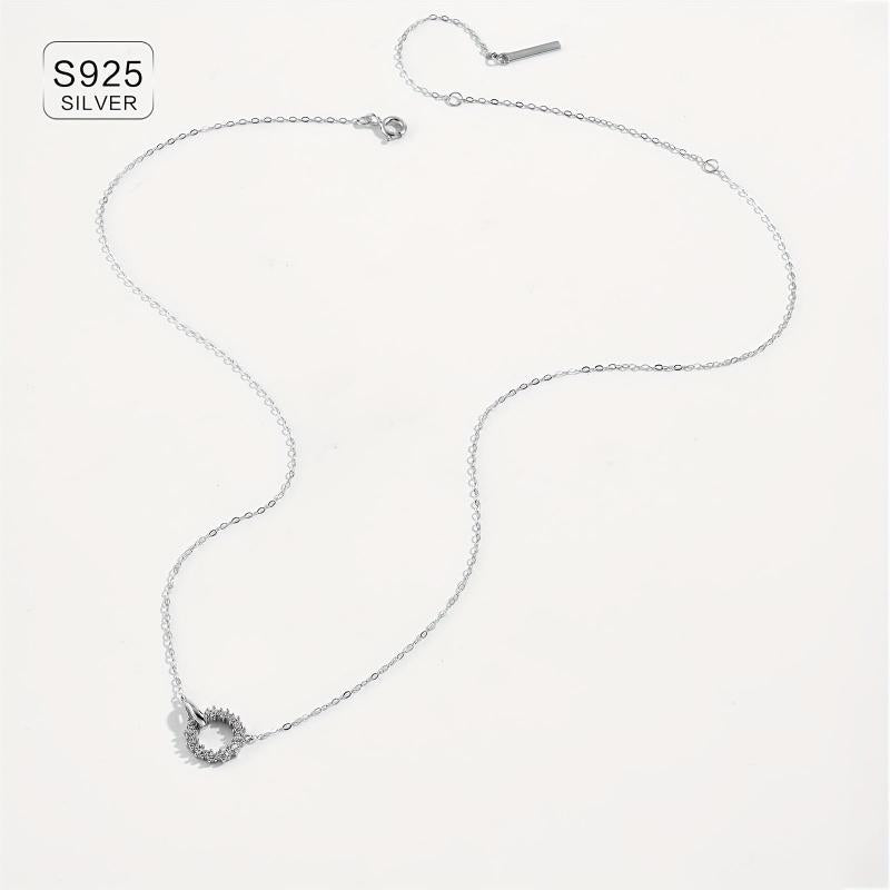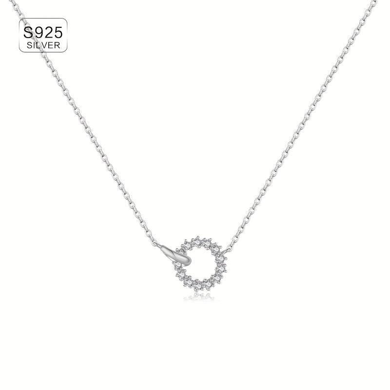 925 Silver Circle Pendant Necklace with Zirconia 55g