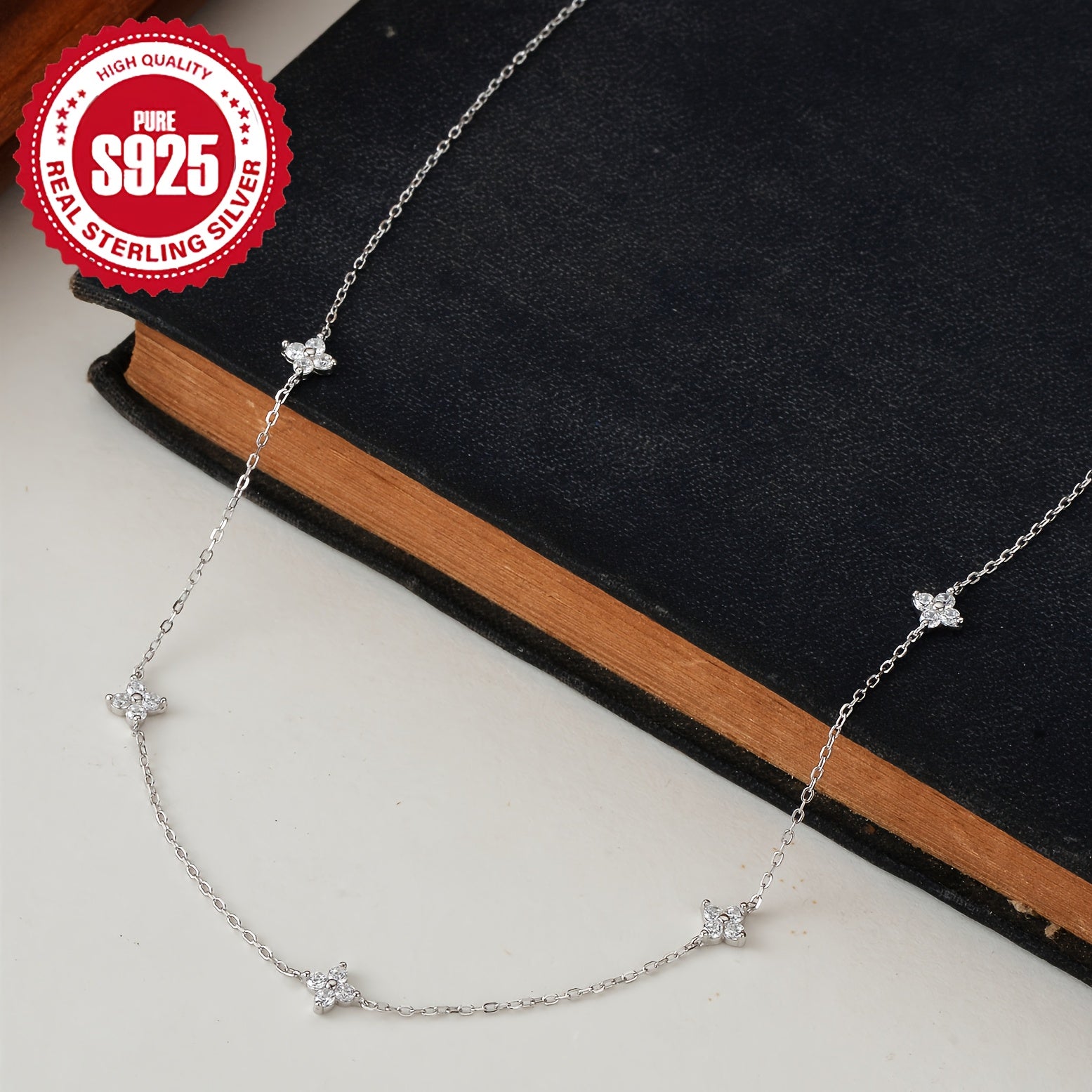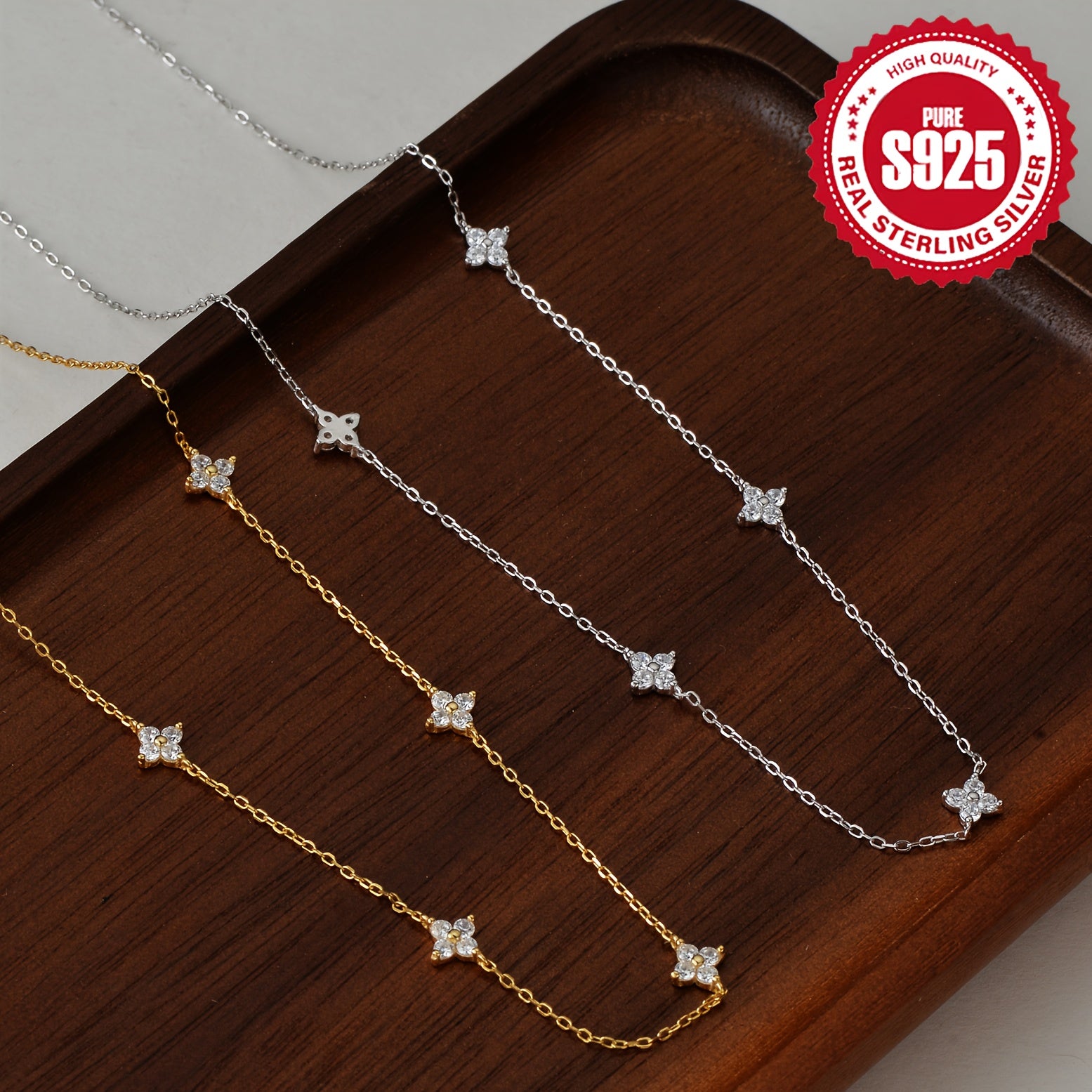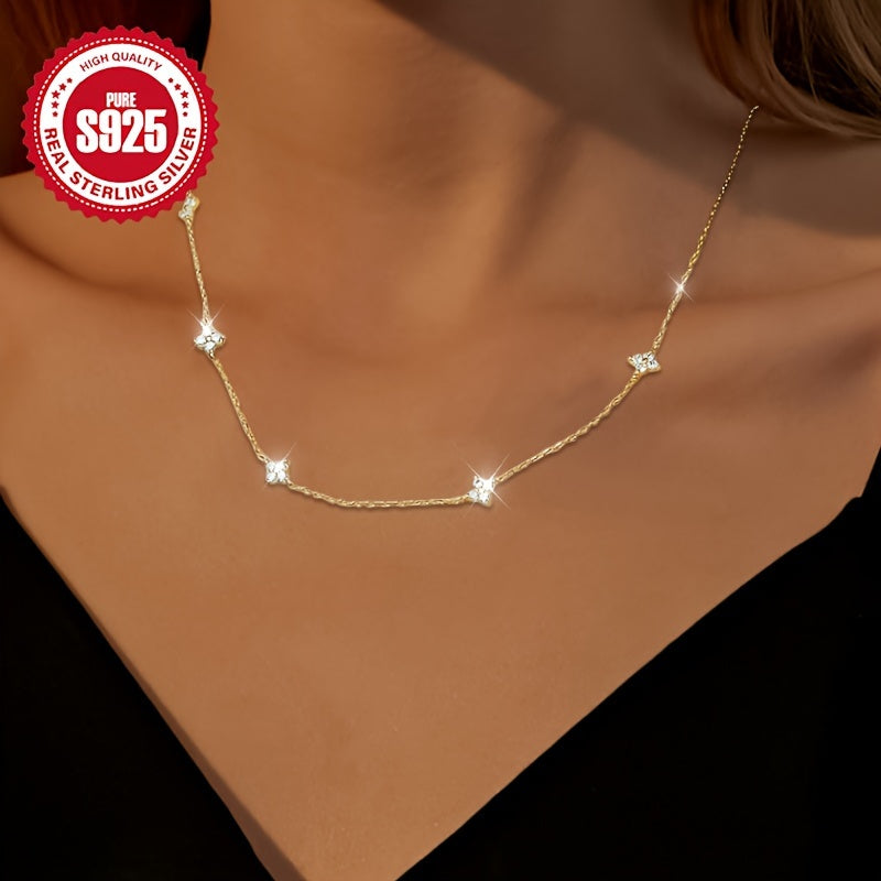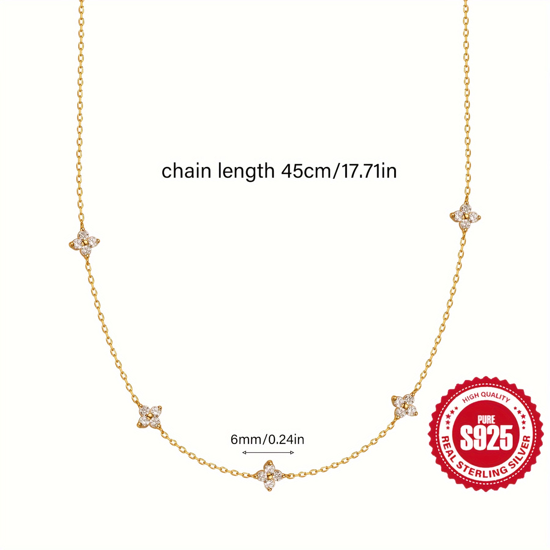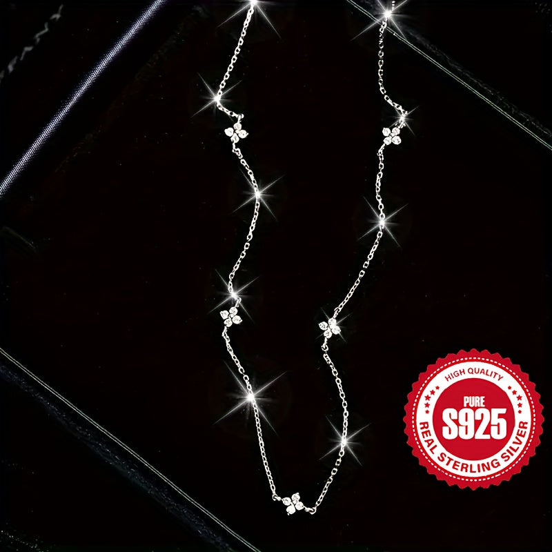 This elegant pendant necklace features a four-leaf clover design crafted from 925 silver and adorned with synthetic zirconia. Perfect for daily wear or as a thoughtful gift.