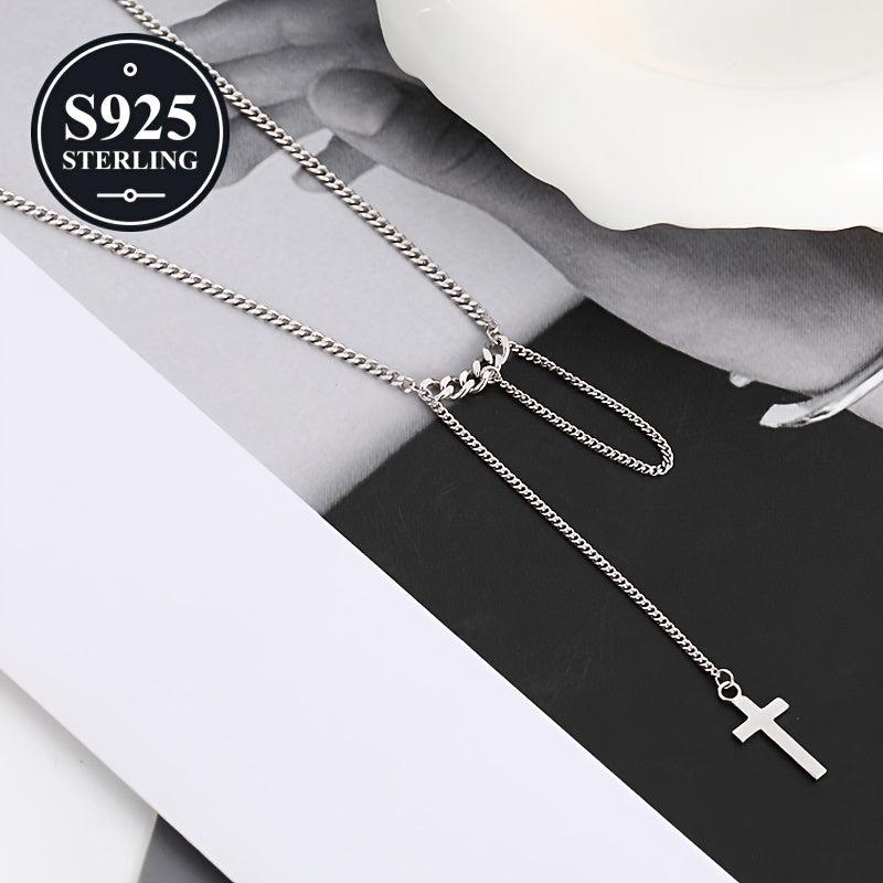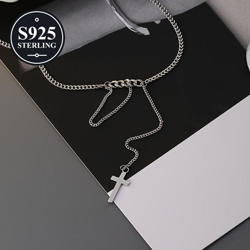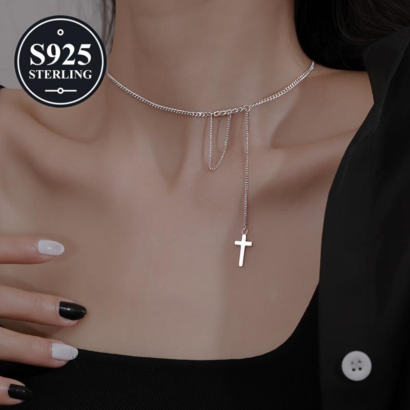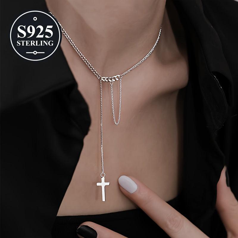 Elegant 925 sterling silver cross necklace with tassel detail. Ideal for parties, music festivals, and everyday wear. Comes in a storage box. Perfect for women.