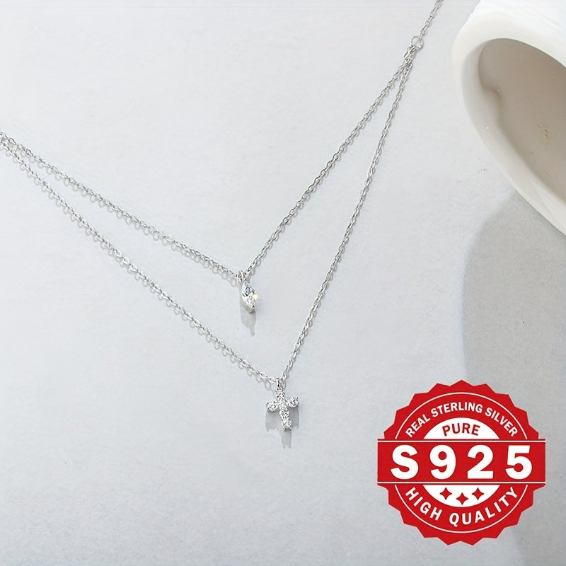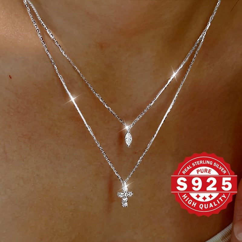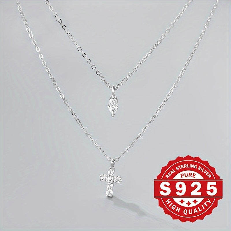 This set includes two stunning necklaces crafted from 925 sterling silver. One features a single cross pendant, while the other has a double-layered cross design. Both are adorned with sparkling synthetic cubic zirconia stones.
