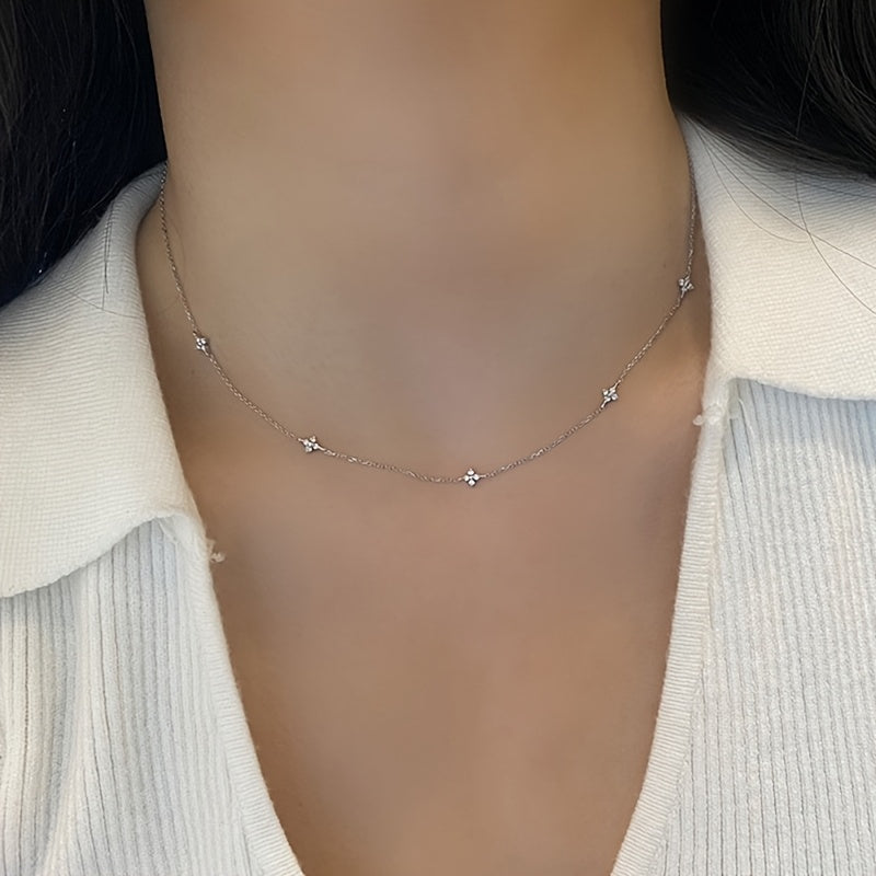Shine this summer with this classic and versatile 925 silver necklace featuring a four-leaf clover design full of stars. Perfect for daily wear or special occasions.