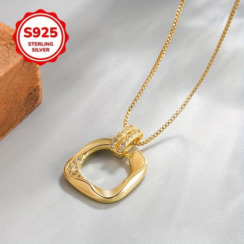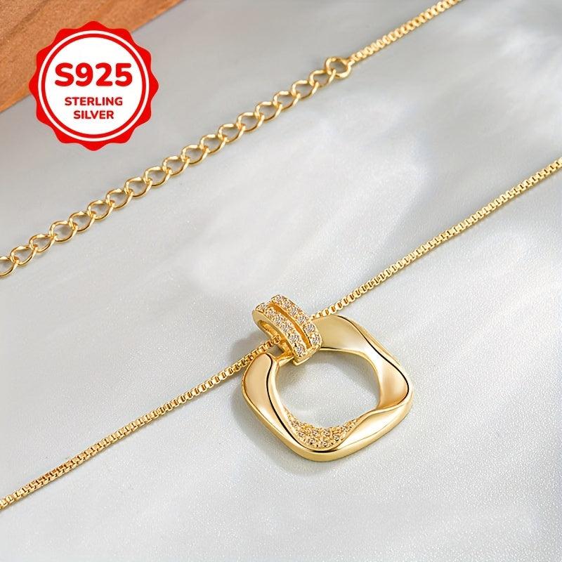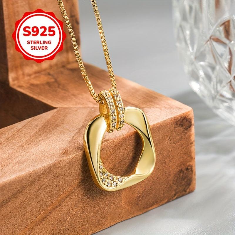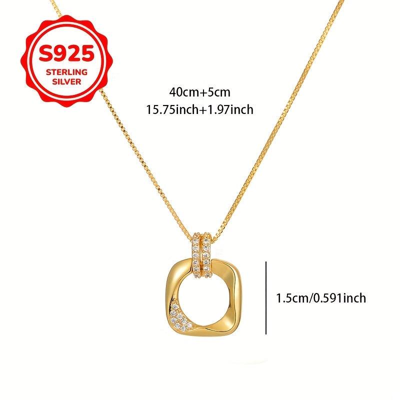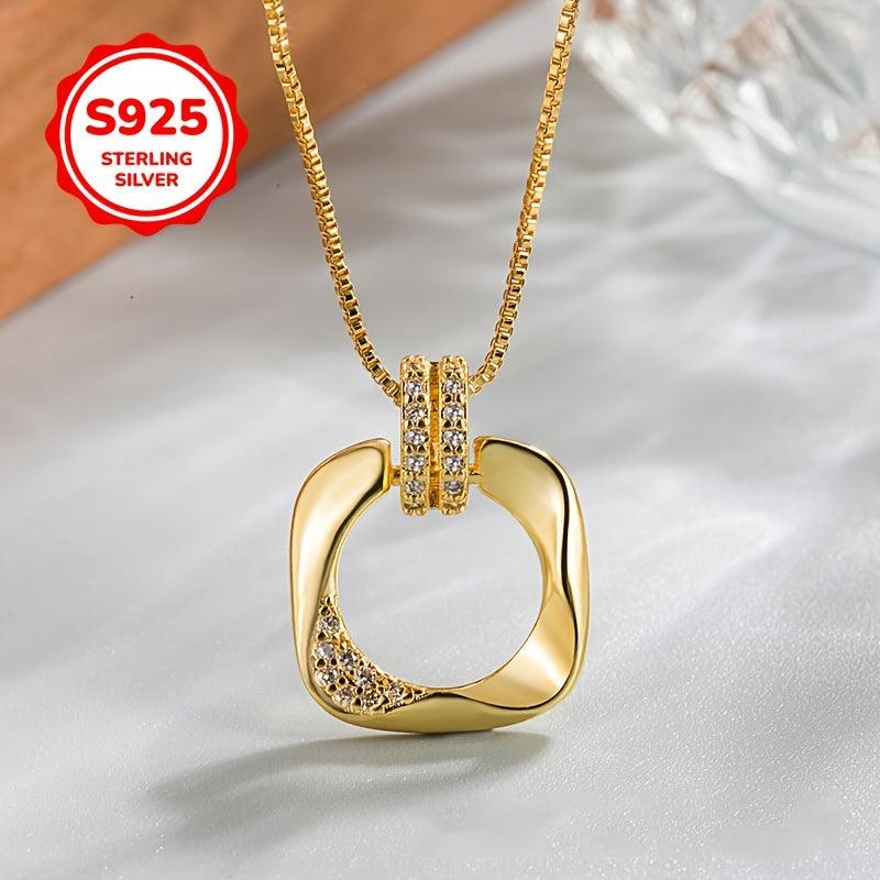 This 925 silver pendant necklace features a stylish geometric twisted square design, adding elegance and creativity to any outfit. Hypoallergenic and versatile, perfect for daily wear.