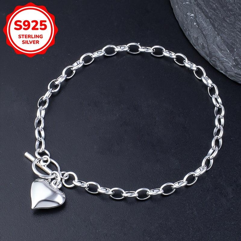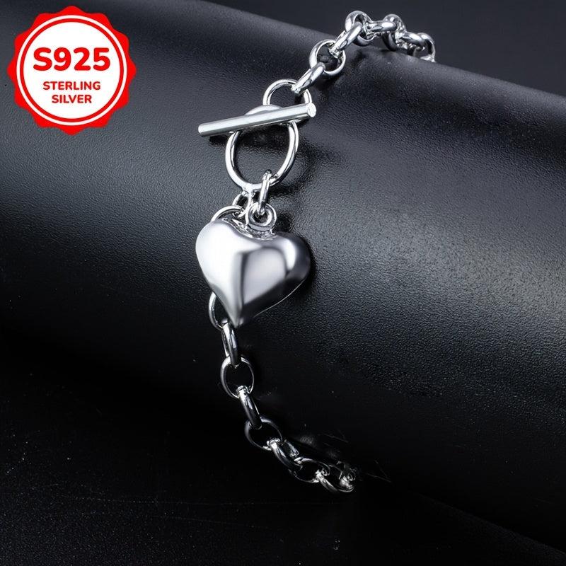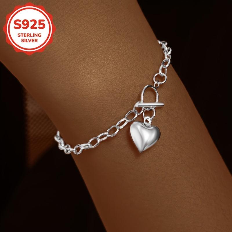 This 925 silver heart charm bracelet is the perfect accessory for daily wear, parties, dates, and as a gift. It has a polished finish that adds a touch of elegance to any outfit.