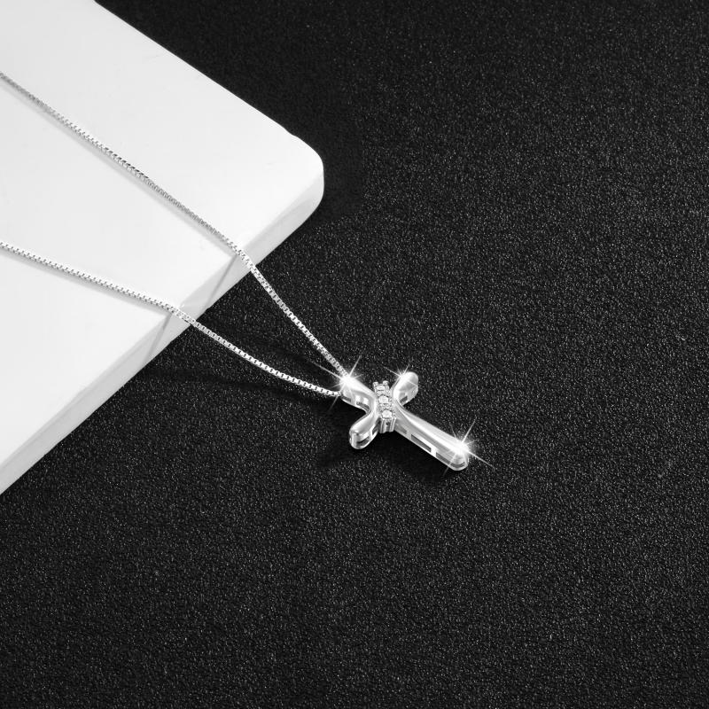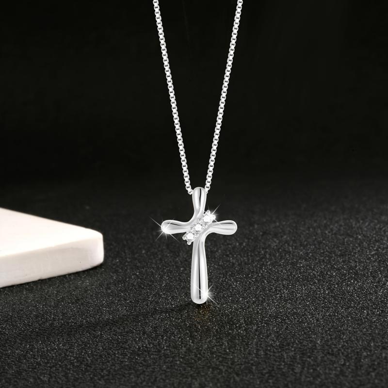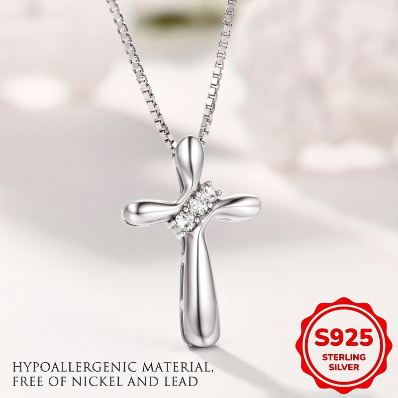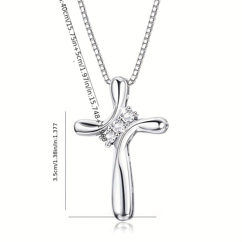 This stunning 925 silver pendant necklace features a heart-shaped cross with sparkling cubic zirconia. Perfect for men and women, the punk style design adds a unique touch to any outfit. Hypoallergenic and ideal for Valentine's Day.
