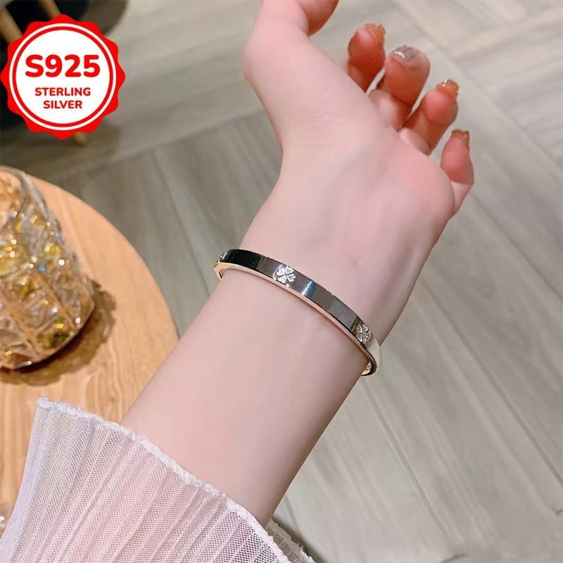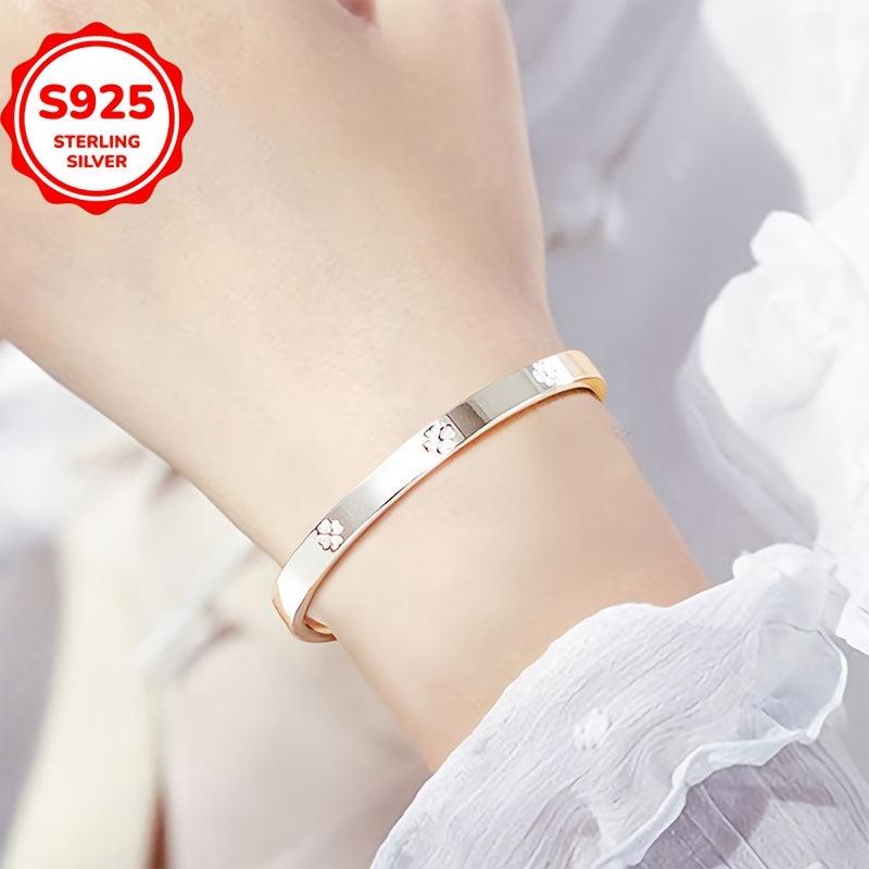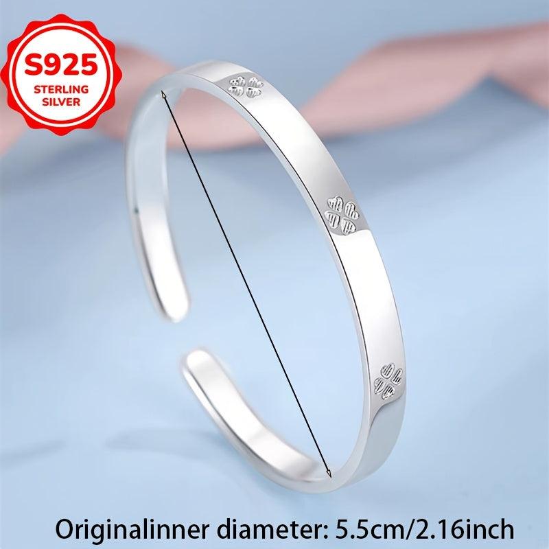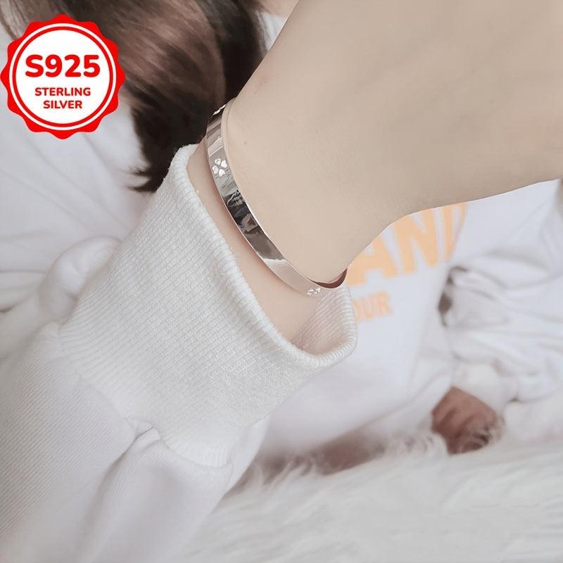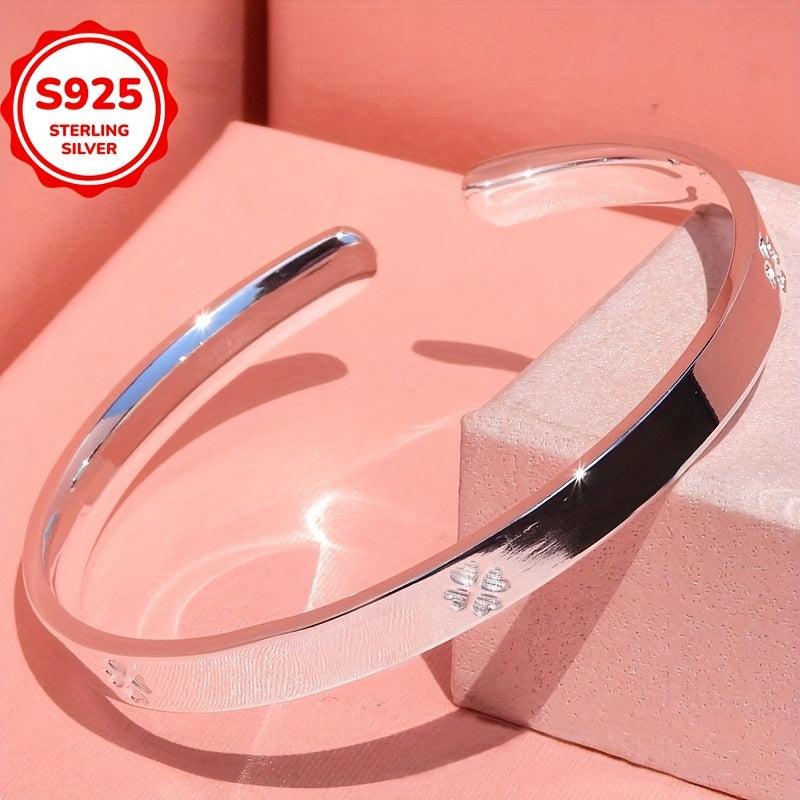 Elegant 925 sterling silver open cuff bracelet featuring a heart pattern. This hypoallergenic piece has a high polish finish, making it versatile for all seasons. It is the perfect gift for Mother's Day.